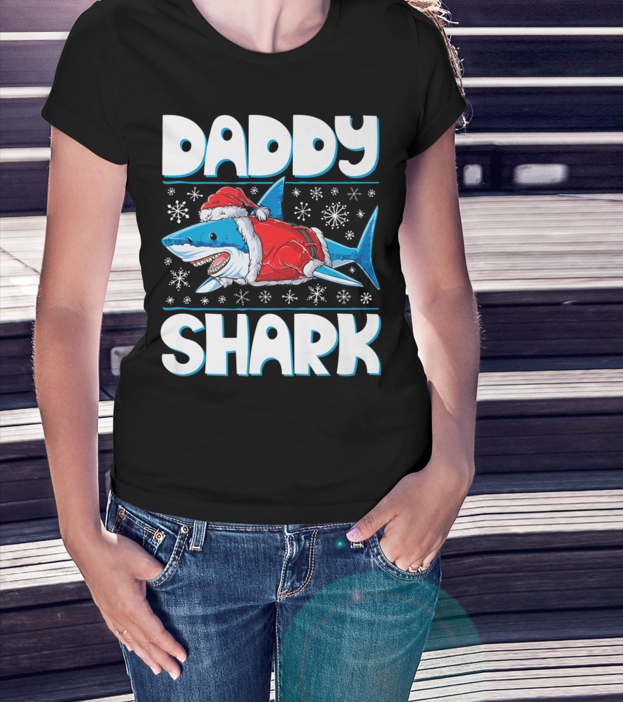 Daddy Shark Santa Christmas Snowflakes T-Shirt