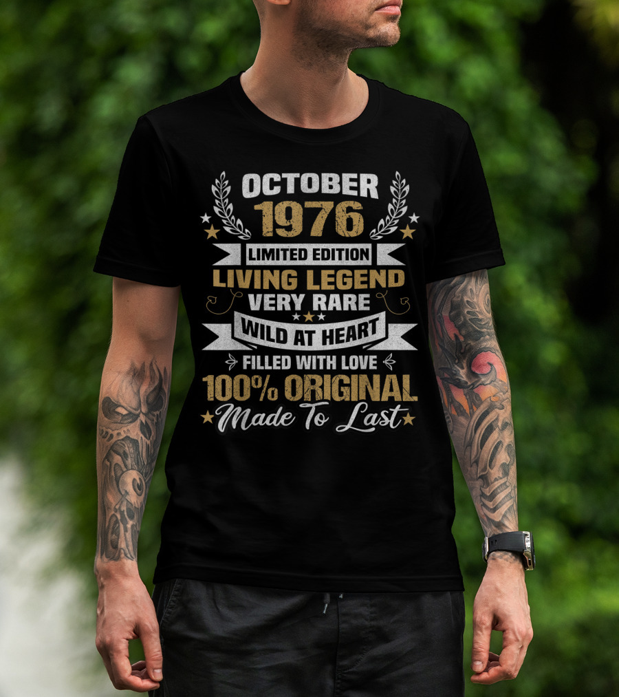 The October 1976 Living Legend Very Rare Wild at Heart 100% Original Made To Last T-shirt is designed for everyday wear and a consistent fit. Fabric is pre-shrunk ring-spun cotton with durable stitching. See the size chart below for exact measurements.