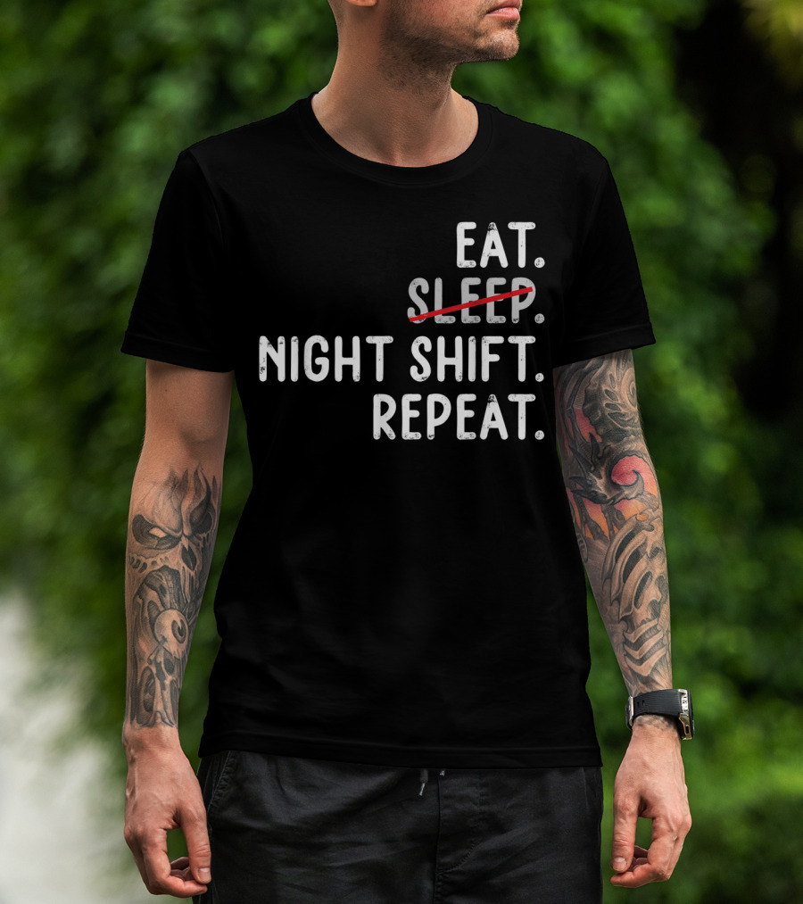 The Eat Night Shift Repeat Nurse T-shirt is designed for everyday wear and a consistent fit. Fabric is pre-shrunk ring-spun cotton with durable stitching. See the size chart below for exact measurements.