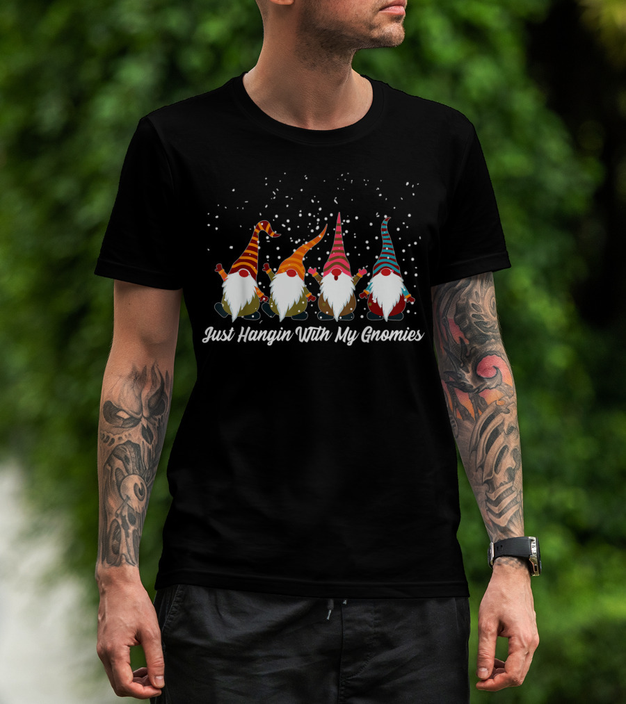 Just Hangin With My Gnomies Snowy Festive Gnome Gathering T-Shirt