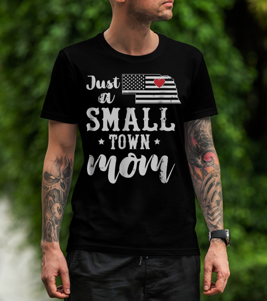 Just A Small Town Mom Nebraska USA Flag Heart T-Shirt