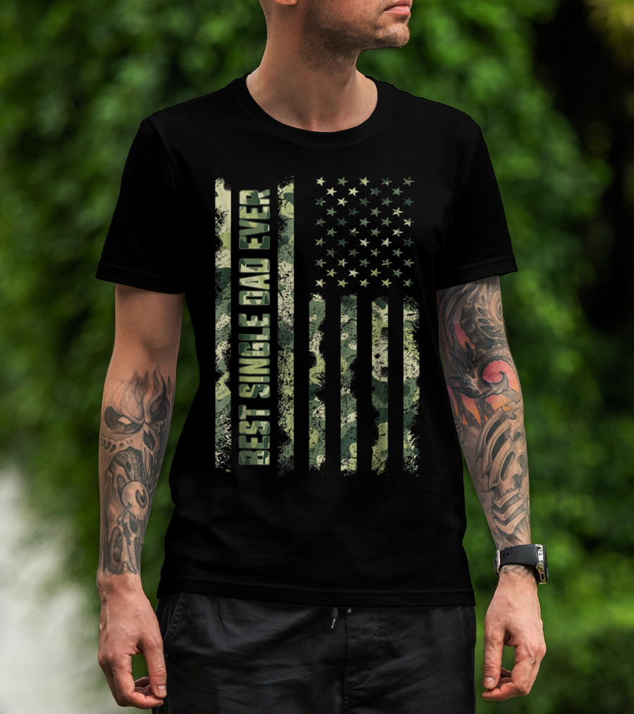 Best Single Dad Ever Camouflage American Flag T-Shirt