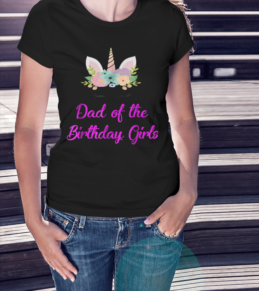 Dad Of The Birthday Girls Cute Unicorn T-Shirt