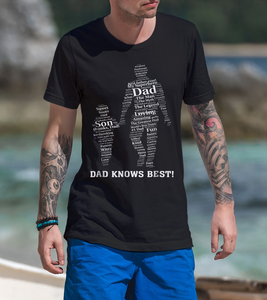 The Dad Knows Best My Superhero Best Father Ever The Man Myth Legend Loving Son Thanks Dad World's Best Daddy T-shirt is designed for everyday wear and a consistent fit. Fabric is pre-shrunk ring-spun cotton with durable stitching. See the size chart below for exact measurements.