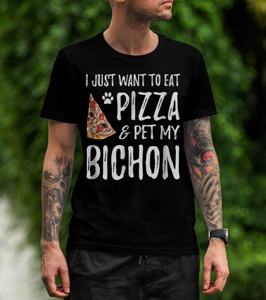 I Just Want To Eat Pizza And Pet My Bichon Dog Mom Or Dog Dad T-Shirt