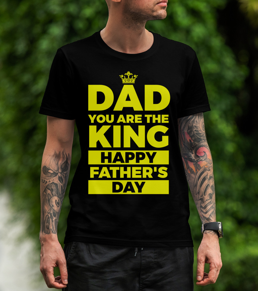 The Dad You Are The King Happy Father's Day T-shirt is designed for everyday wear and a consistent fit. Fabric is pre-shrunk ring-spun cotton with durable stitching. See the size chart below for exact measurements.