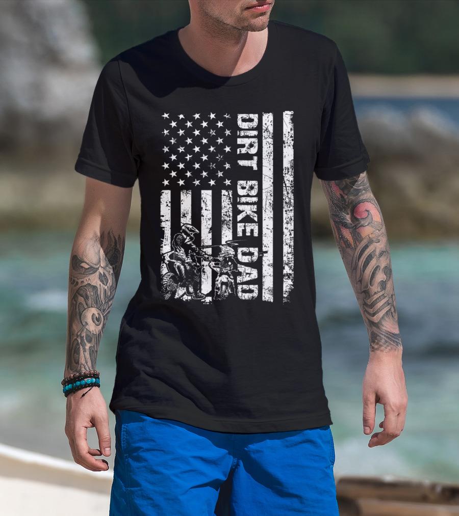 Dirt Bike Dad American Flag Father And Son Motocross T-Shirt