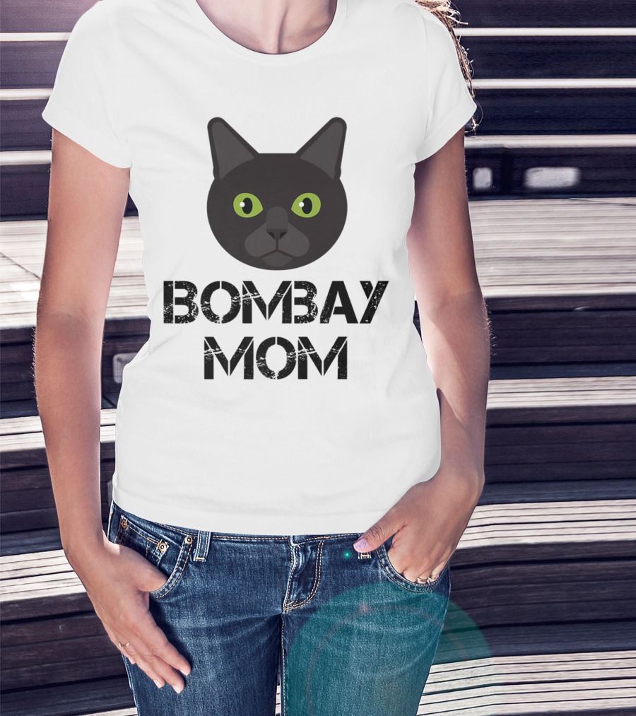Bombay Mom Cat Owner Black Cat Face T-Shirt