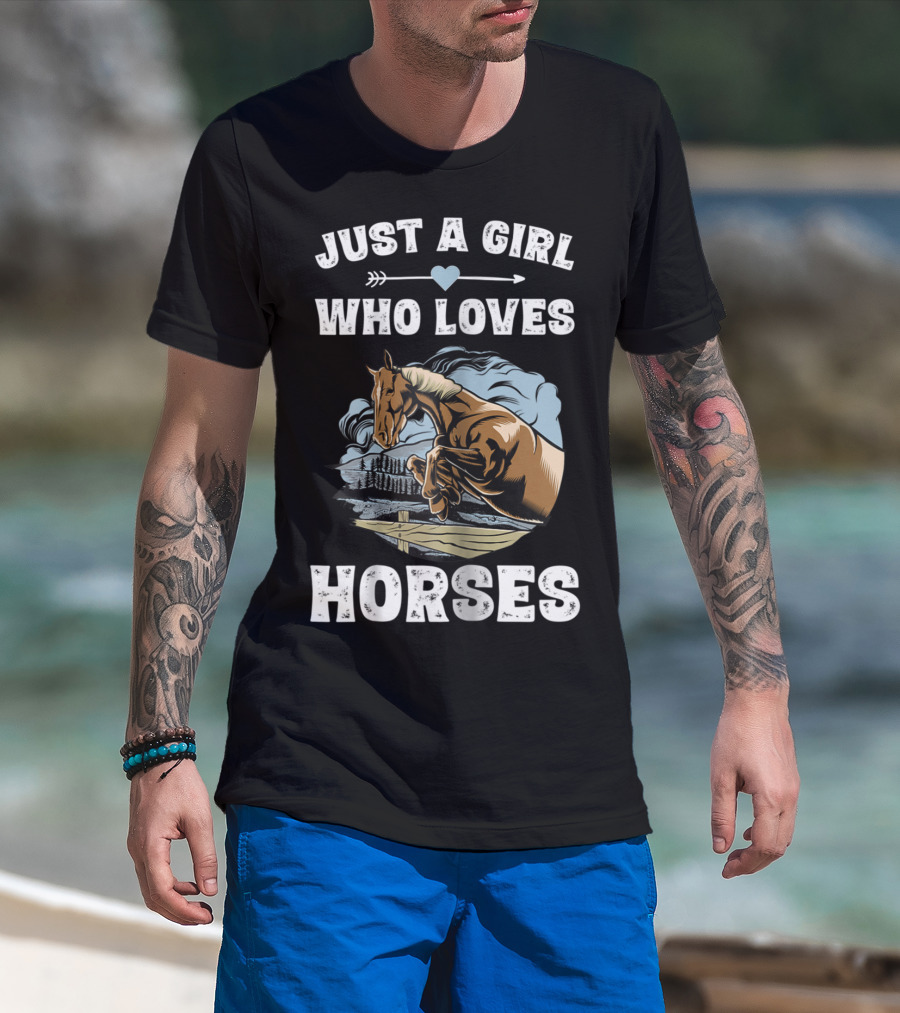 Just A Girl Who Loves Horses Racing Riding Equestrian T-Shirt