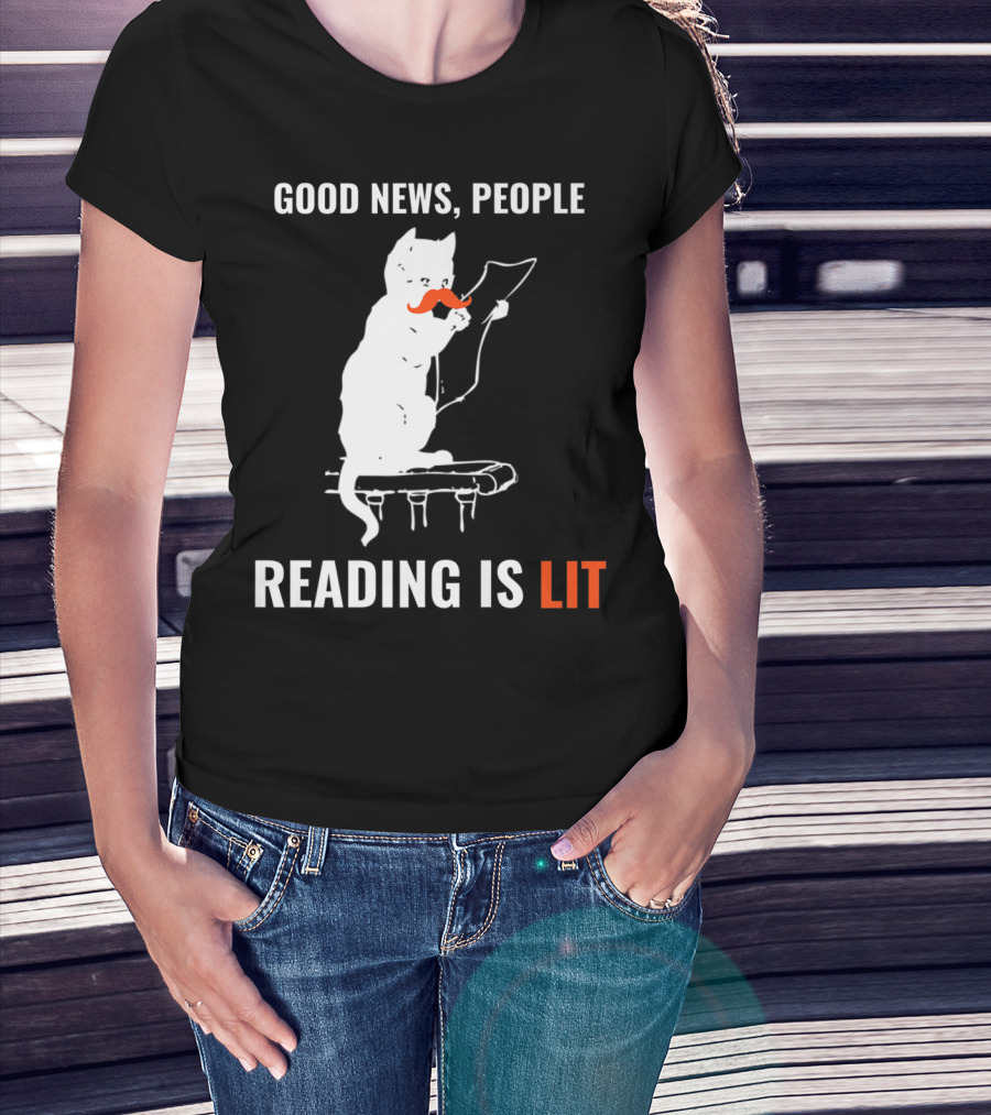 Good News People Cat Reading Is Lit Book Nerd Funny Cat Librarian Cat Mom28 T-Shirt