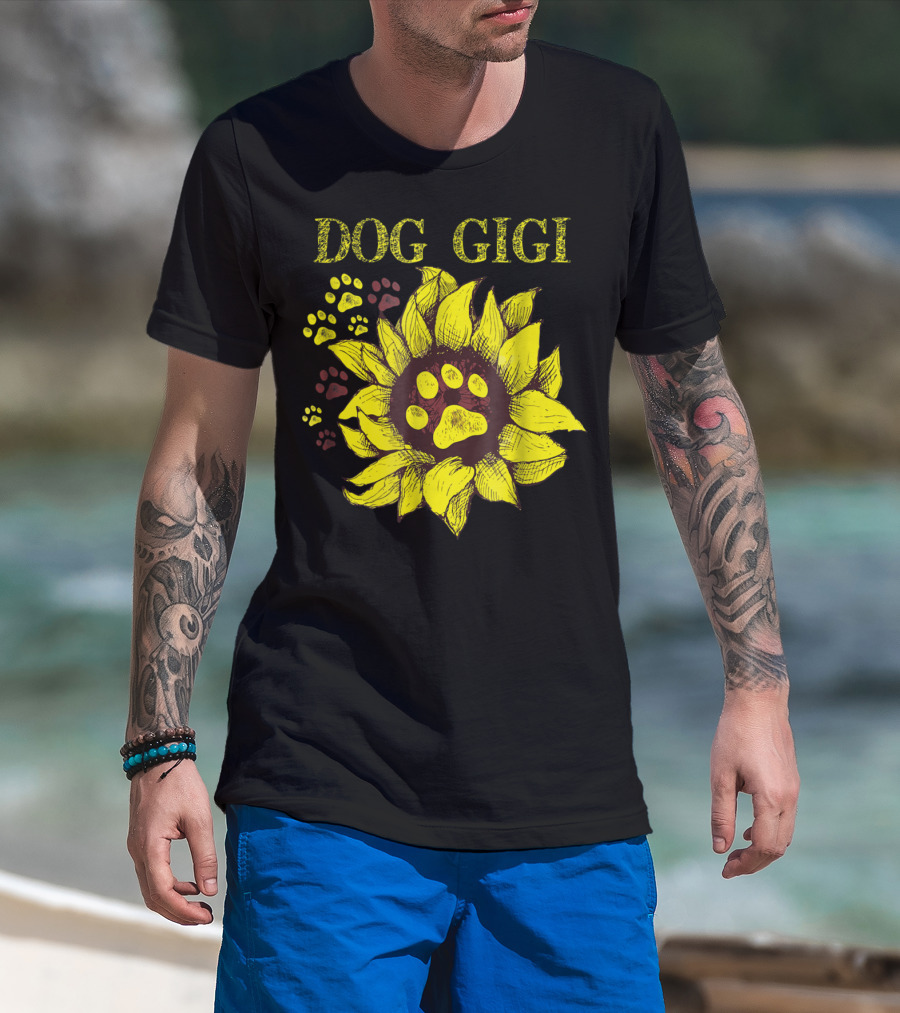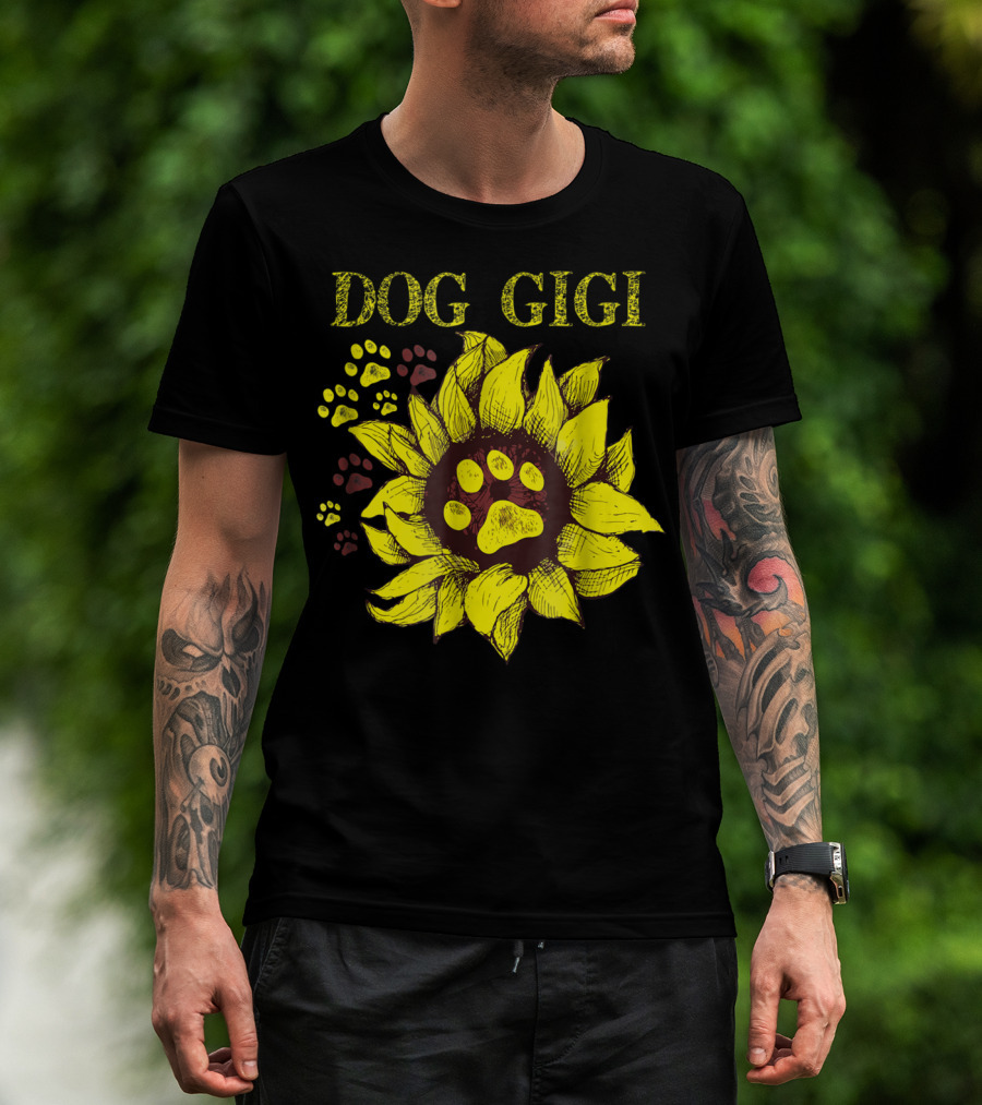 Dog Gigi Sunflower Paw Prints T-Shirt