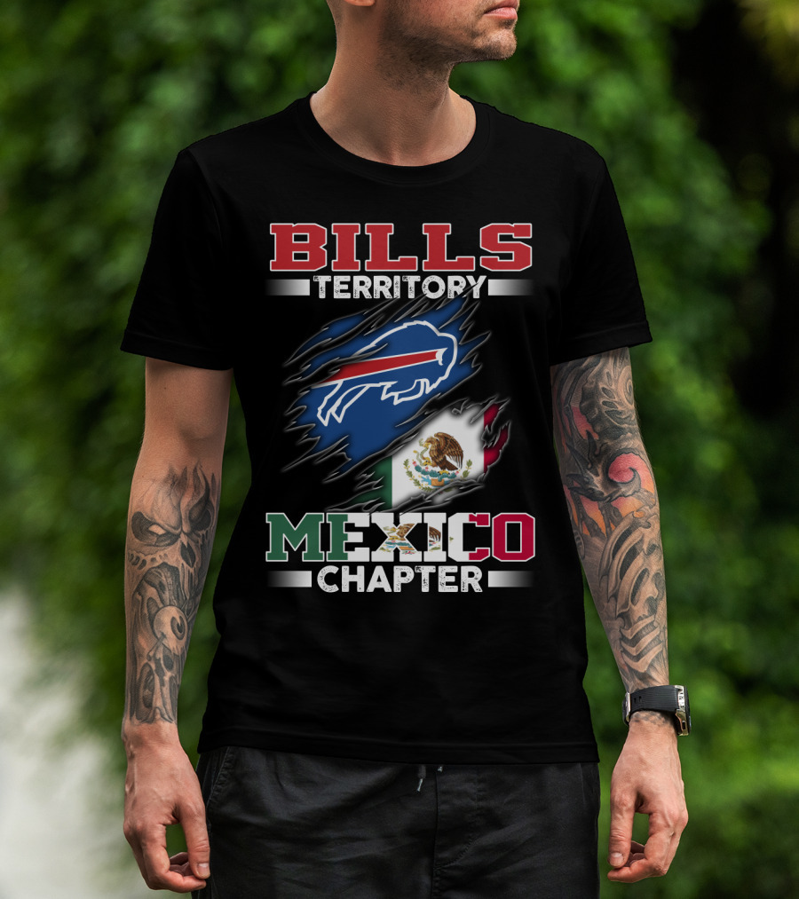 BILLS Territory Mexico Chapter Buffalo Logo Mexican Flag T-Shirt
