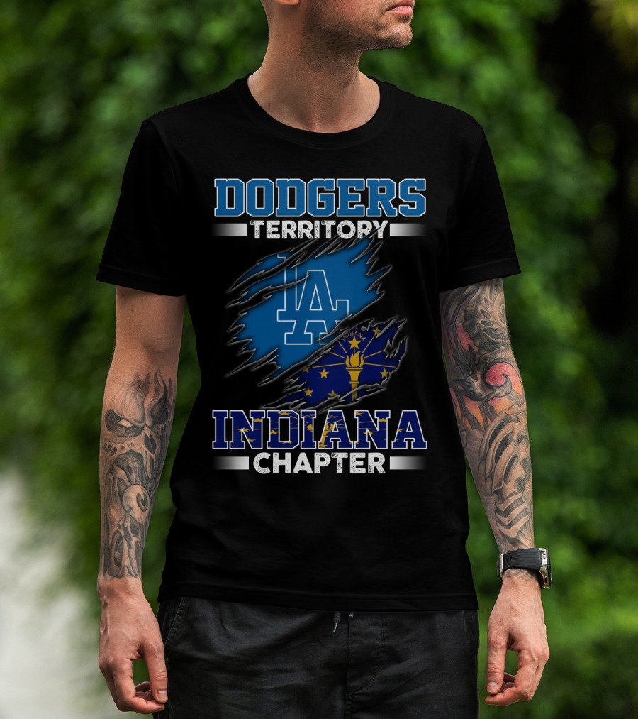The Dodgers Territory Indiana Chapter T-shirt is designed for everyday wear and a consistent fit. Fabric is pre-shrunk ring-spun cotton with durable stitching. See the size chart below for exact measurements.