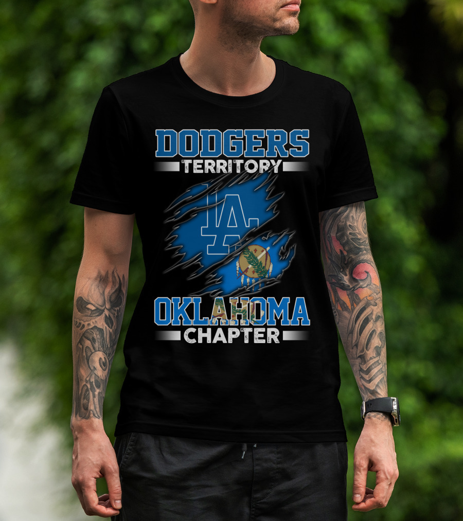 DODGERS TERRITORY OKLAHOMA CHAPTER LA LOGO RIPPED FLAG T-Shirt