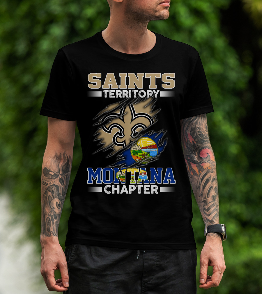 The SAINTS Territory Montana Chapter T-shirt is designed for everyday wear and a consistent fit. Fabric is pre-shrunk ring-spun cotton with durable stitching. See the size chart below for exact measurements.