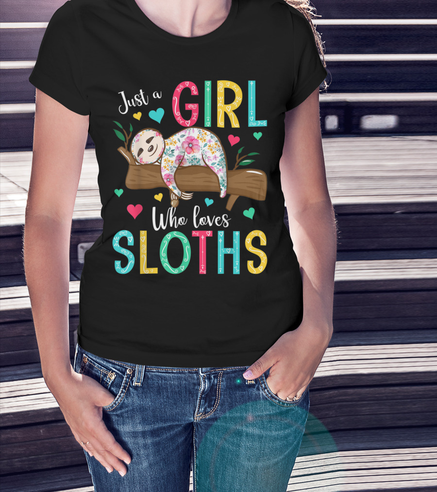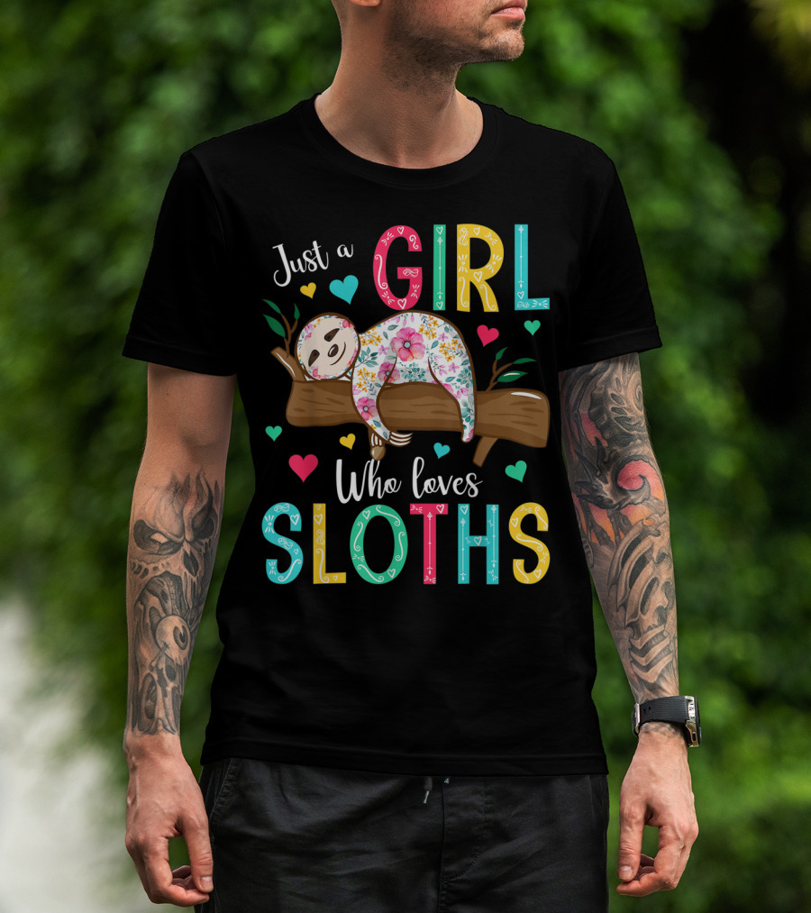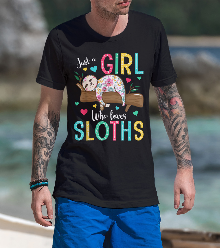 Just A Girl Who Loves Sloths Colorful Floral Heart Decor T-Shirt