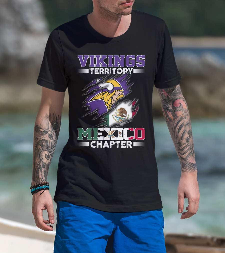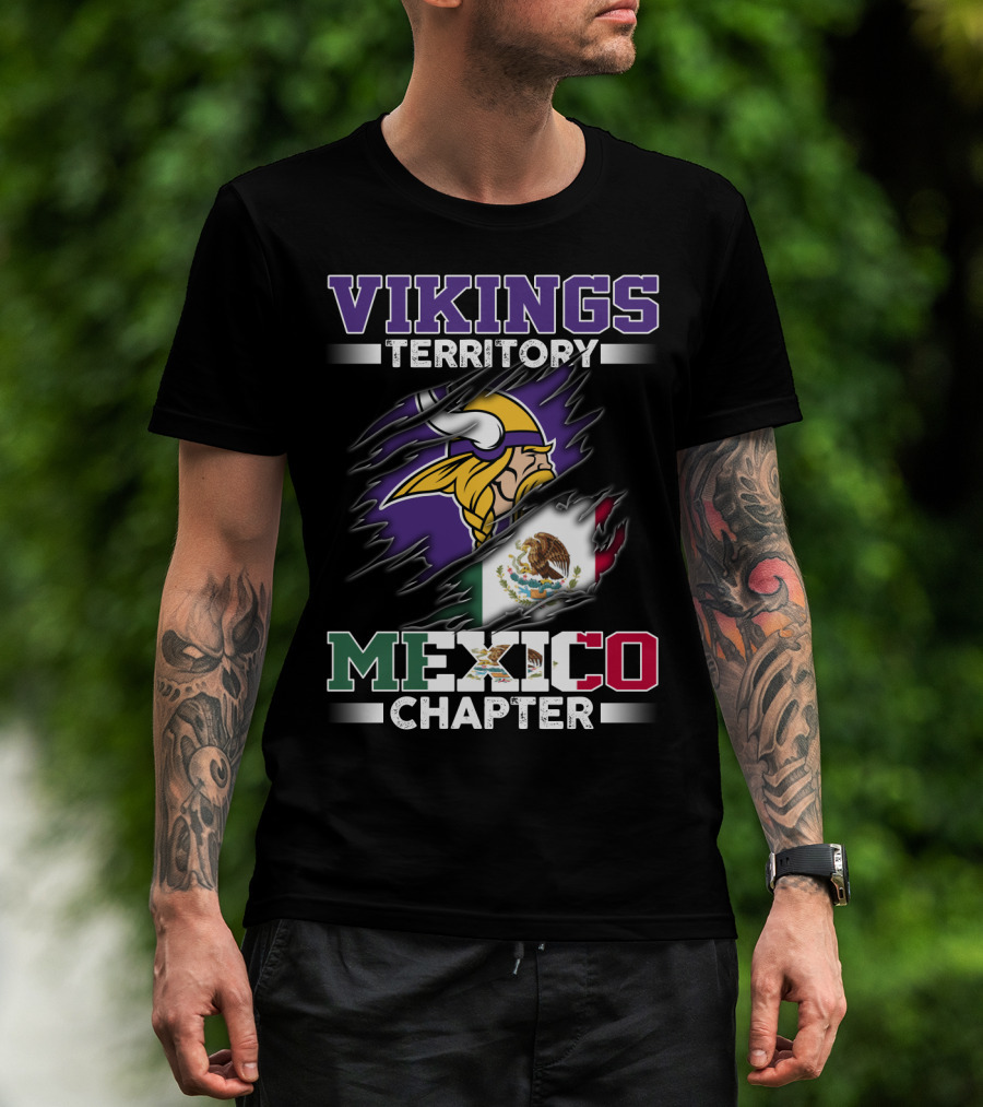 The Vikings Territory Mexico Chapter T-shirt is designed for everyday wear and a consistent fit. Fabric is pre-shrunk ring-spun cotton with durable stitching. See the size chart below for exact measurements.