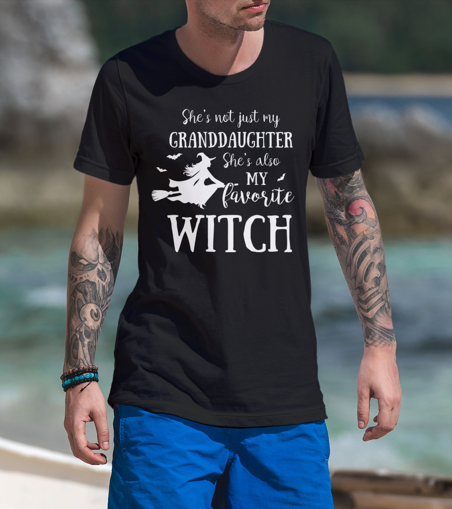 She’s Not Just My Granddaughter She’s Also My Favorite Witch With Flying Witch And Bats T-Shirt