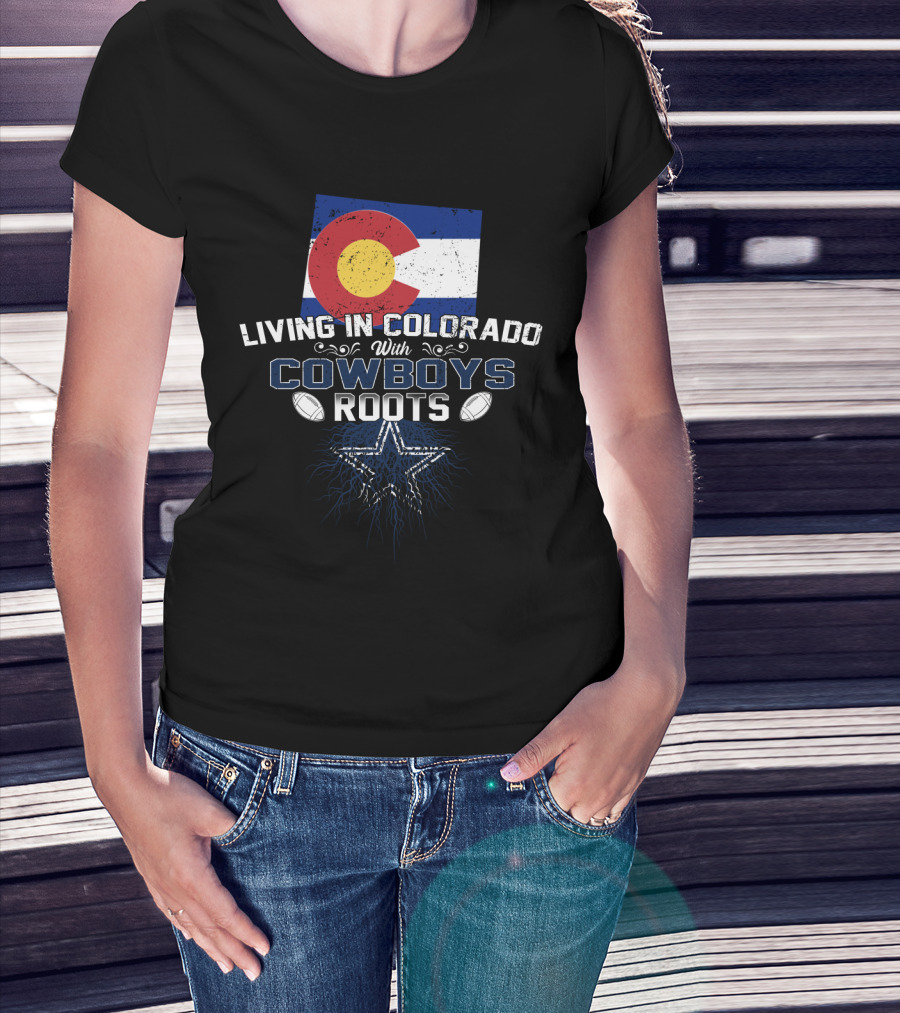 Living In Colorado With Cowboys Roots Colorado Flag And Star Football Elements T-Shirt