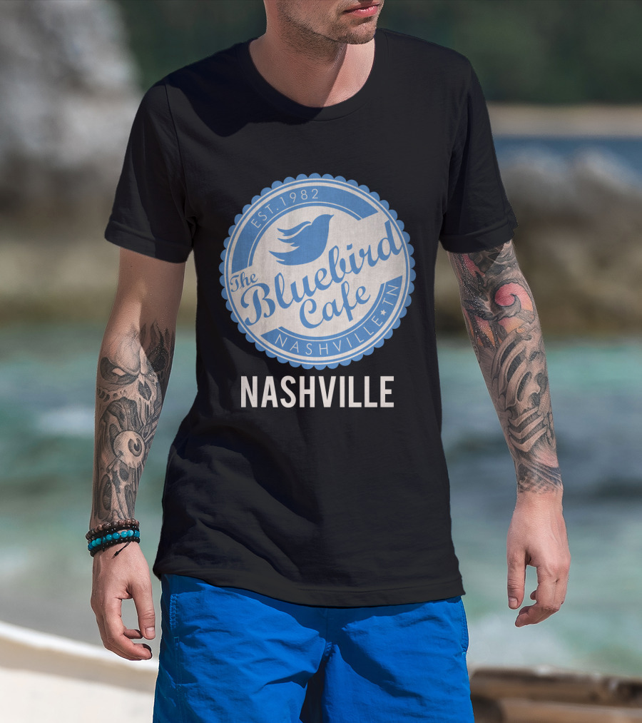 The Bluebird Cafe Nashville Est. 1982 The Bluebird Cafe Nashville TN T-shirt is designed for everyday wear and a consistent fit. Fabric is pre-shrunk ring-spun cotton with durable stitching. See the size chart below for exact measurements.