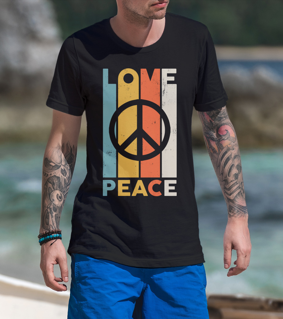 LOVE Peace Sign Vintage Stripes T-Shirt