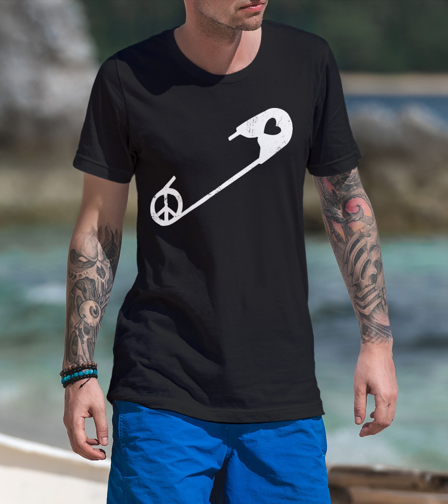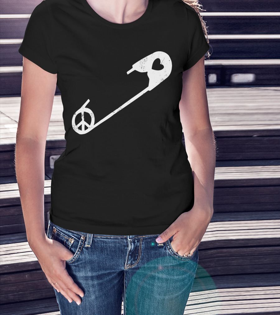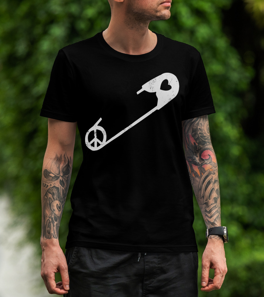 The Peace Heart Safety Pin T-shirt is designed for everyday wear and a consistent fit. Fabric is pre-shrunk ring-spun cotton with durable stitching. See the size chart below for exact measurements.