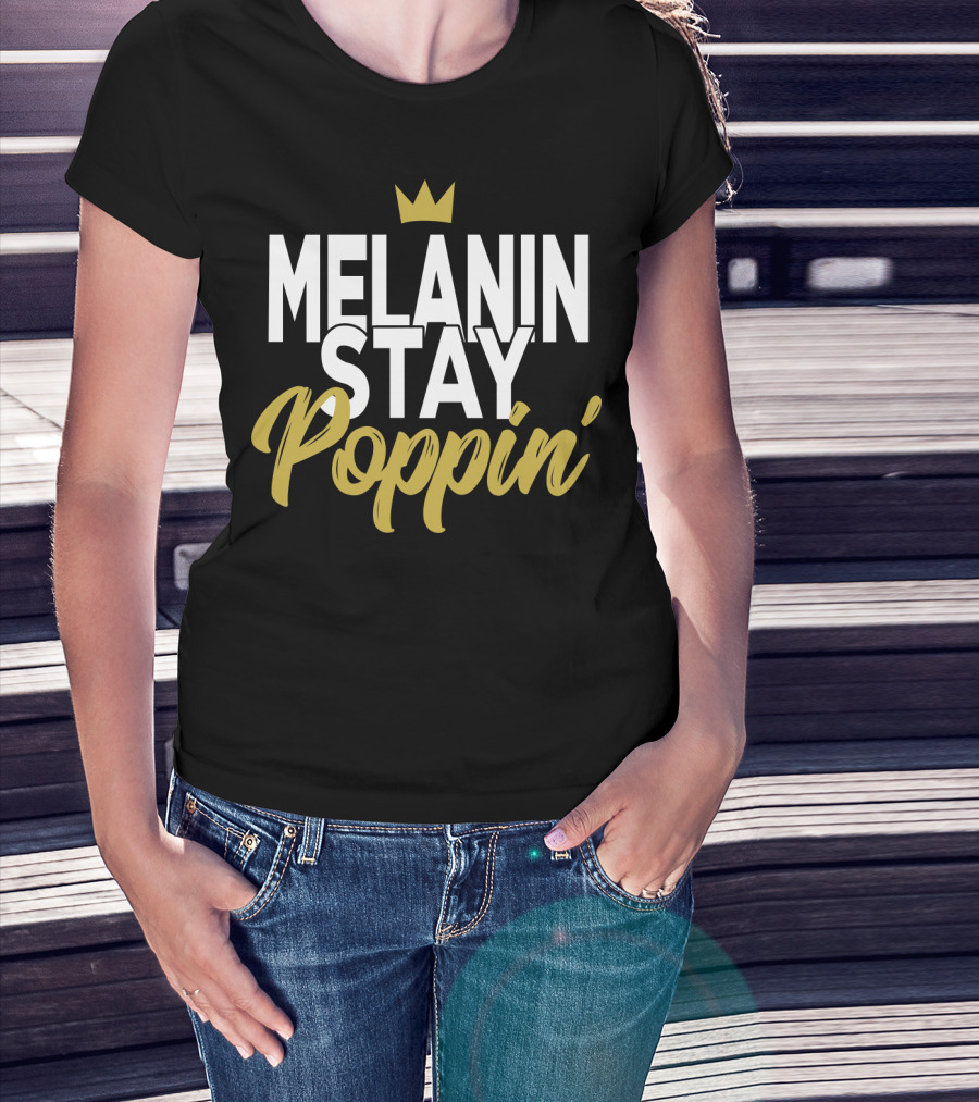 The Melanin Stay Poppin Crown T-shirt is designed for everyday wear and a consistent fit. Fabric is pre-shrunk ring-spun cotton with durable stitching. See the size chart below for exact measurements.