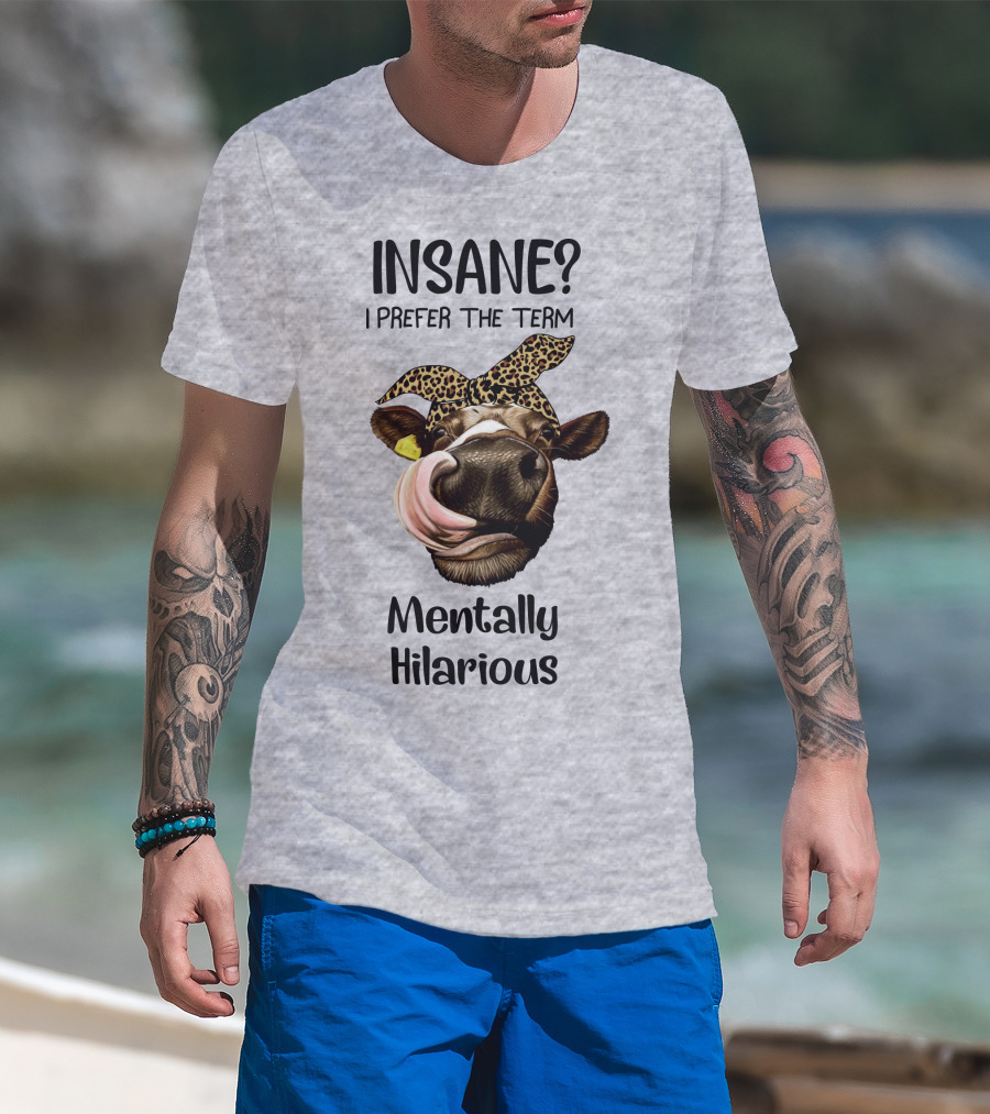 INSANE? I Prefer The Term Mentally Hilarious Cow Wearing Leopard Bandana T-Shirt