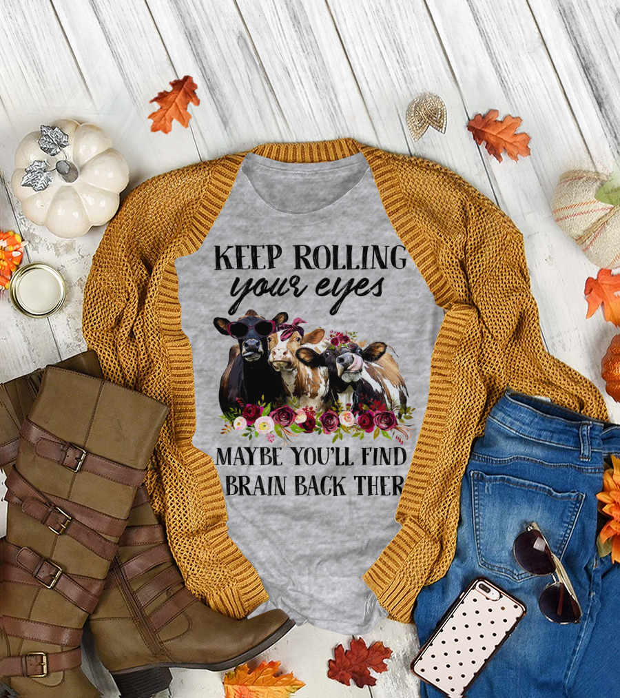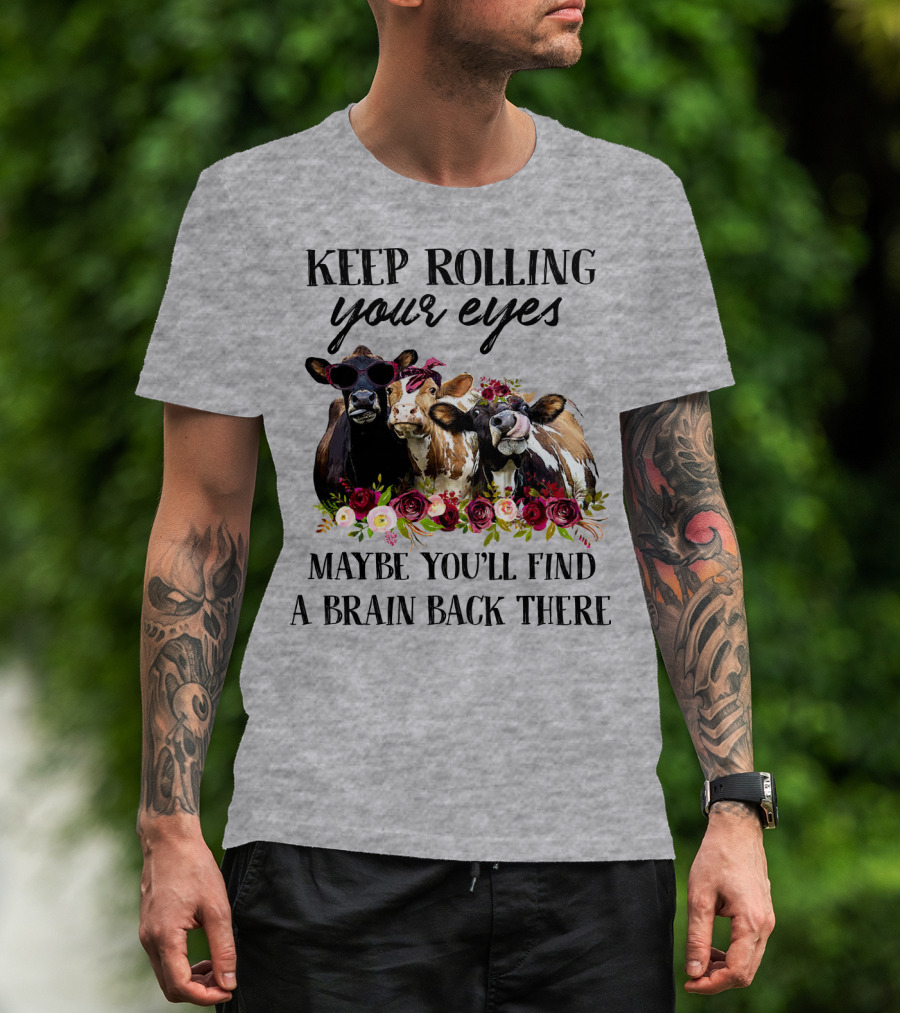 KEEP ROLLING YOUR EYES MAYBE YOU'LL FIND A BRAIN BACK THERE COWS WITH FLOWERS AND SUNGLASSES T-Shirt