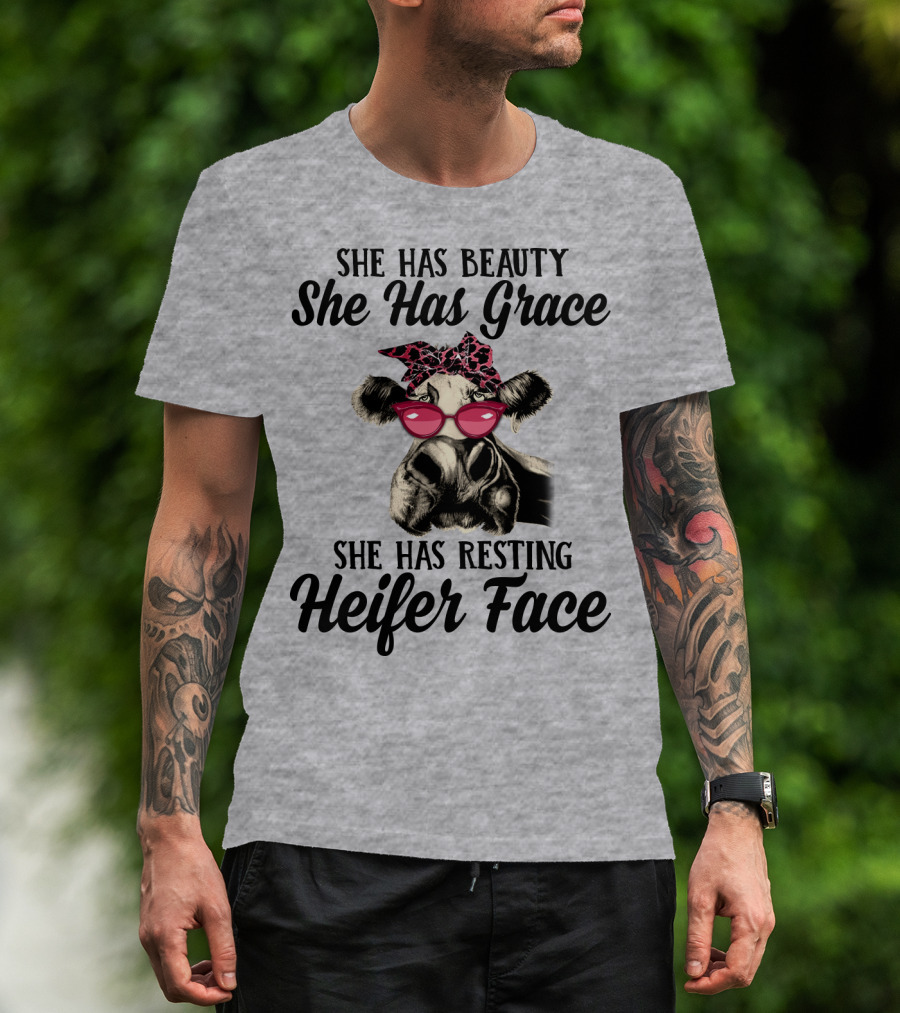 She Has Beauty She Has Grace She Has Resting Heifer Face T-Shirt