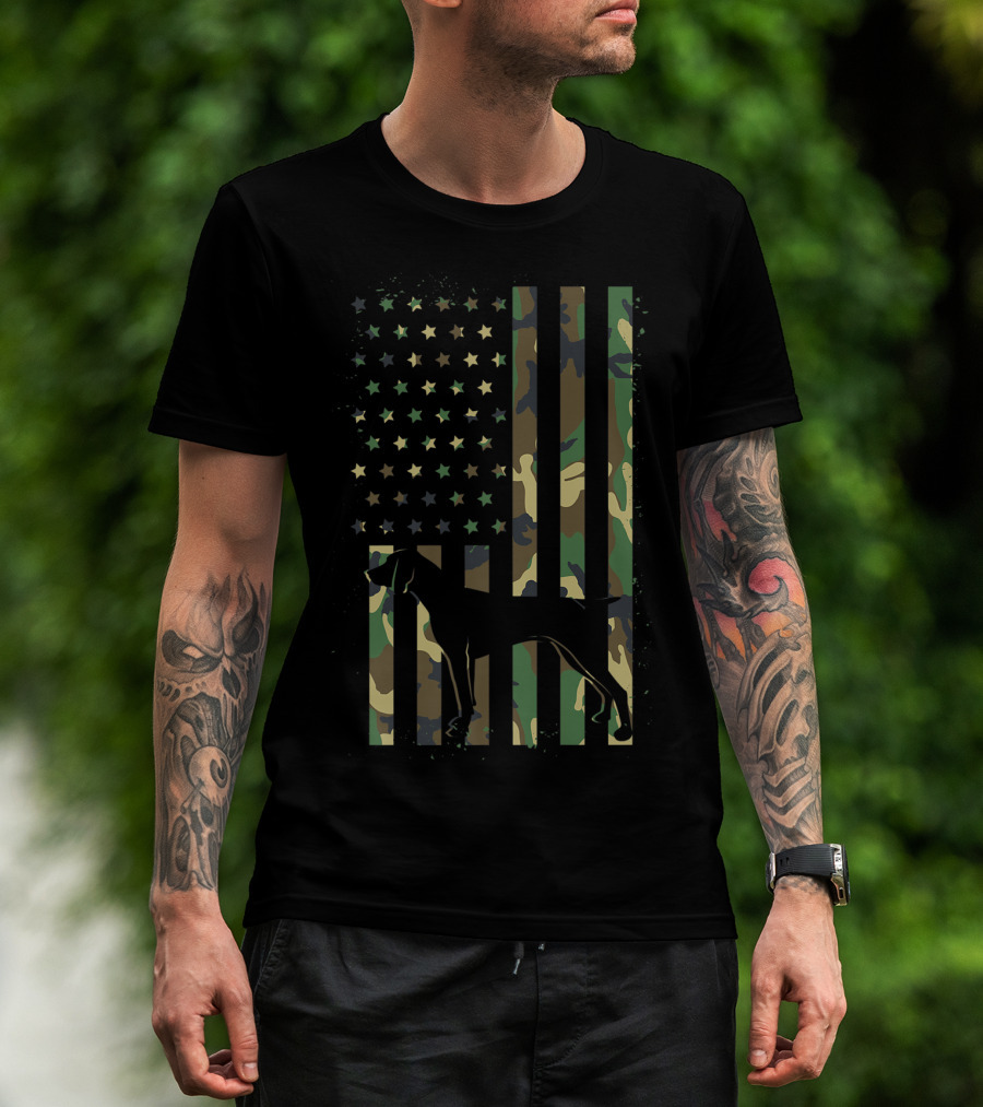 German Shorthair Pointer Mom Dog Camouflage American Flag T-Shirt