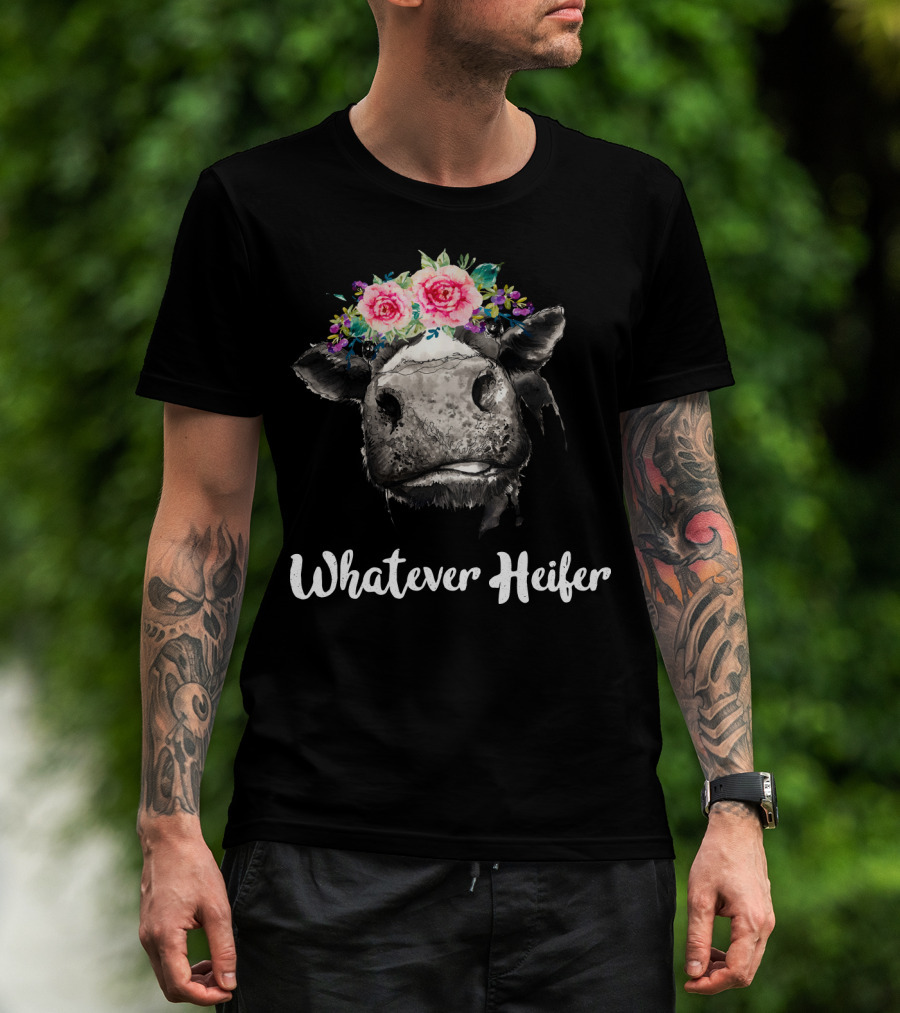 Whatever Heifer Cow Head With Floral Crown T-Shirt