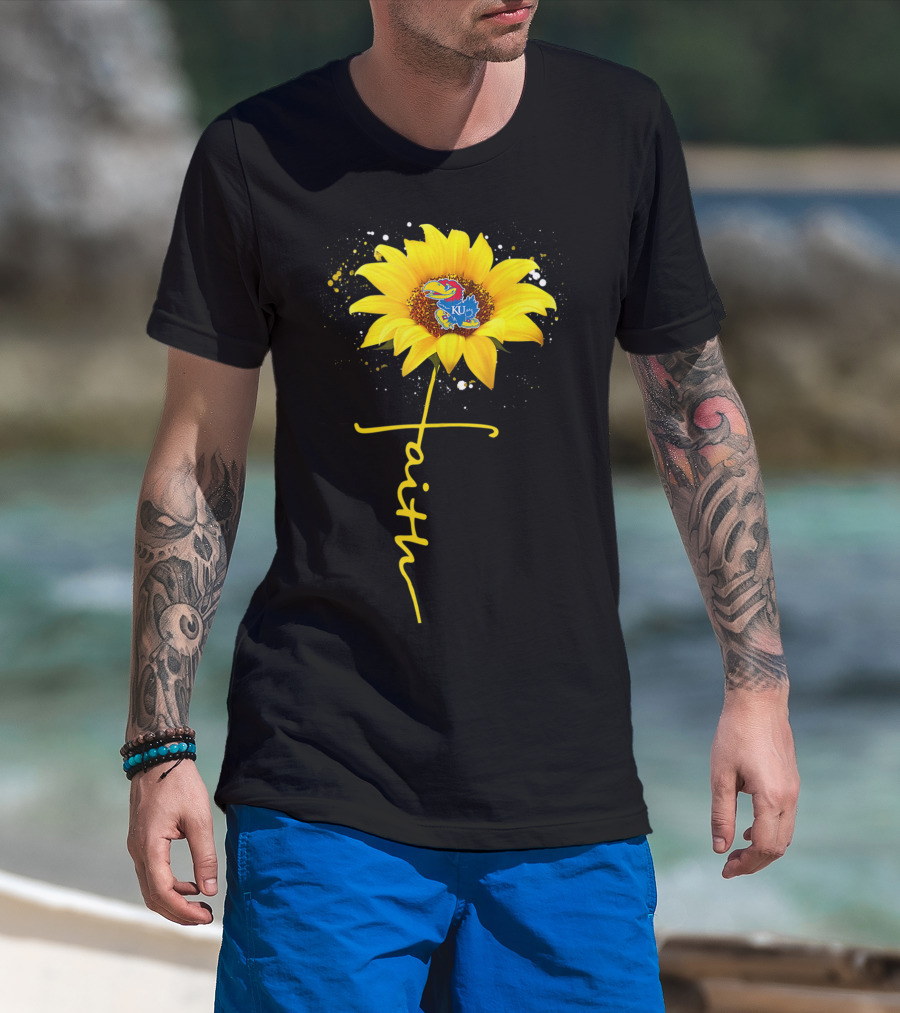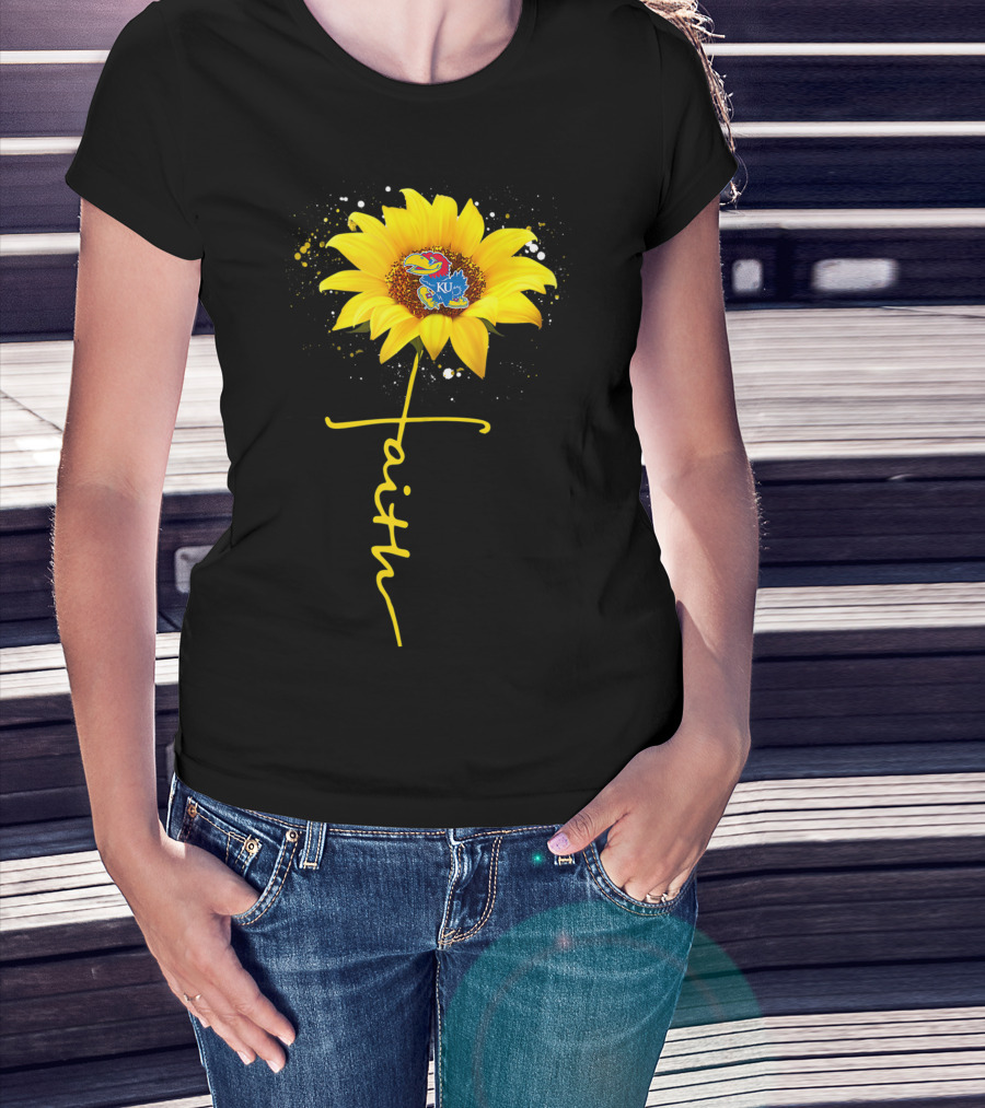 Kansas Jayhawks Sunflower Faith Cross Shape T-Shirt