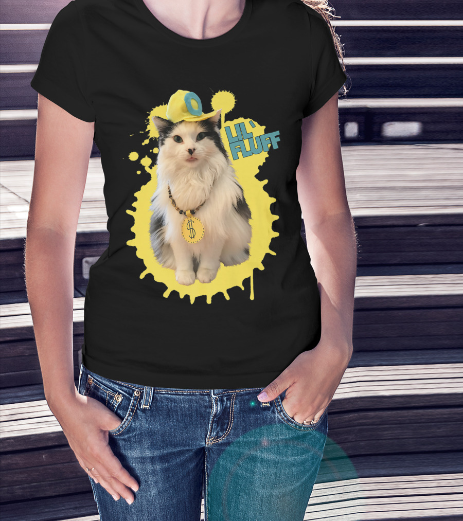 The Lil' Fluff Cool Cat with Dollar Sign Necklace and Cap T-shirt is designed for everyday wear and a consistent fit. Fabric is pre-shrunk ring-spun cotton with durable stitching. See the size chart below for exact measurements.