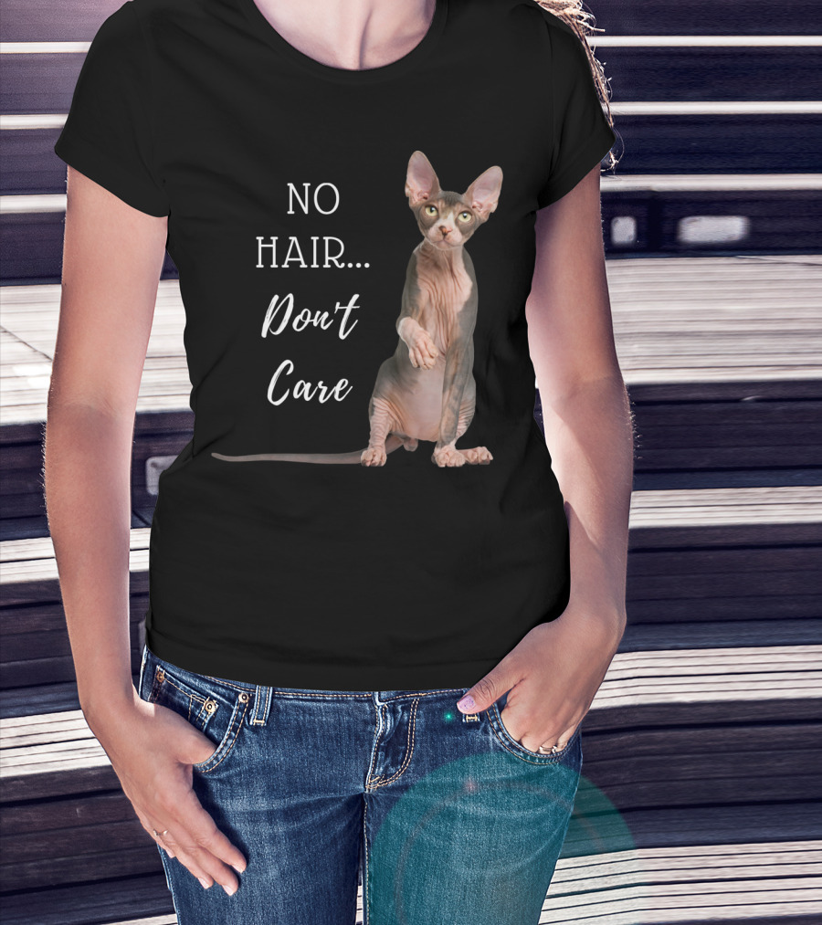 The No Hair Don't Care Hairless Cat T-shirt is designed for everyday wear and a consistent fit. Fabric is pre-shrunk ring-spun cotton with durable stitching. See the size chart below for exact measurements.