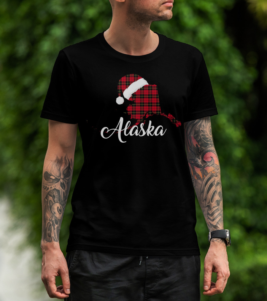 Alaska Red Buffalo Royal Stewart Tartan With Santa Hat T-Shirt