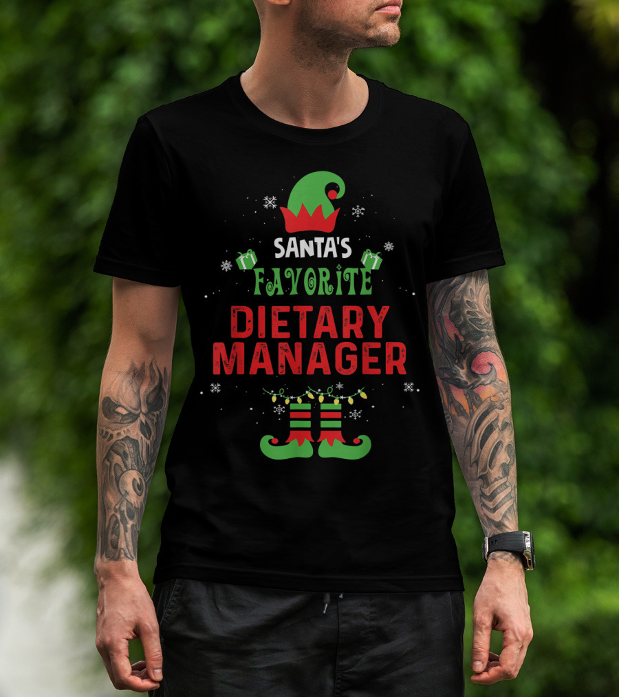 Santa's Favorite Dietary Manager Elf Hat Snowflakes Presents Holiday T-Shirt