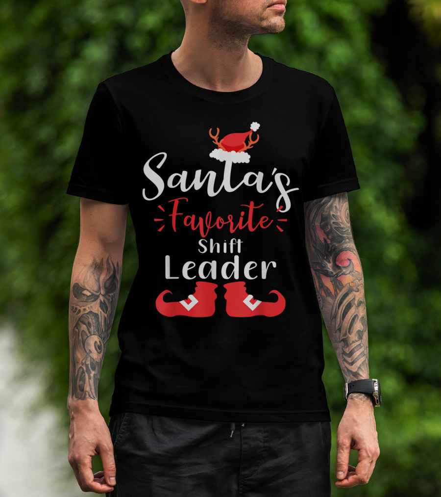 Santa's Favorite Shift Leader Antler Hat And Elf Boots T-Shirt