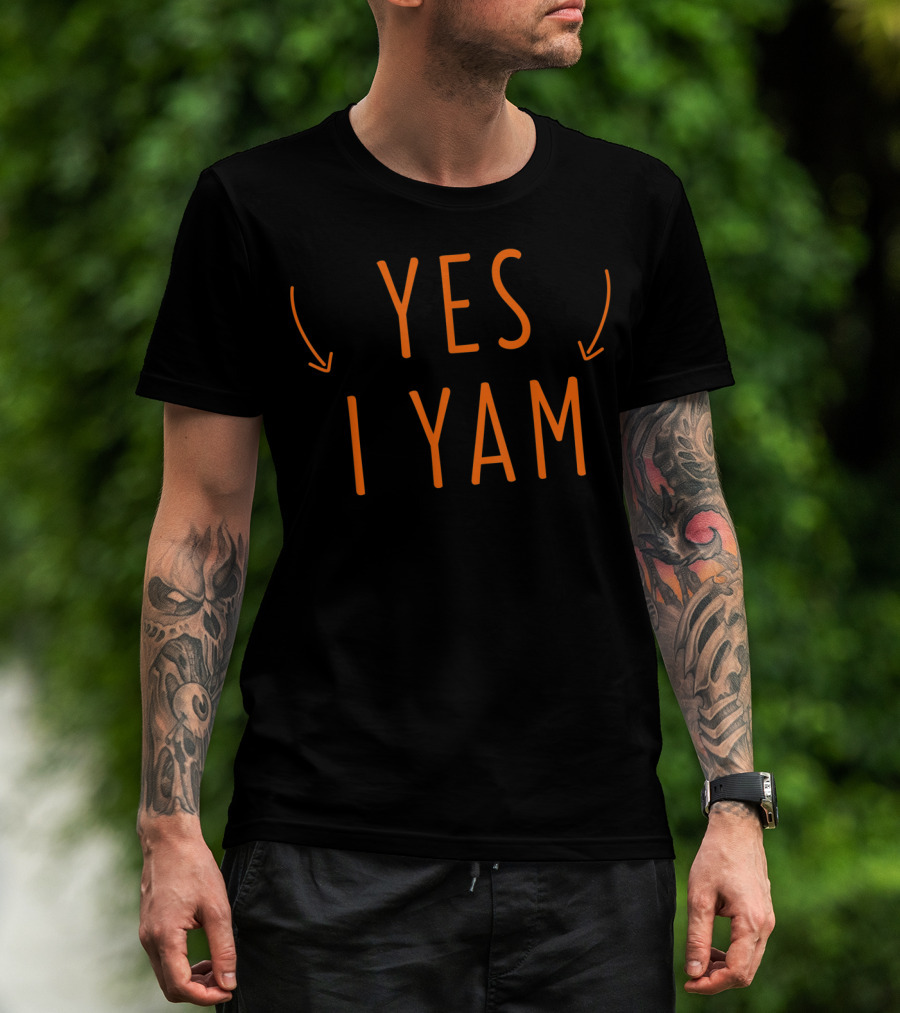 The She's My Sweet Potato Yes I Yam Matching Couple's T-shirt is designed for everyday wear and a consistent fit. Fabric is pre-shrunk ring-spun cotton with durable stitching. See the size chart below for exact measurements.