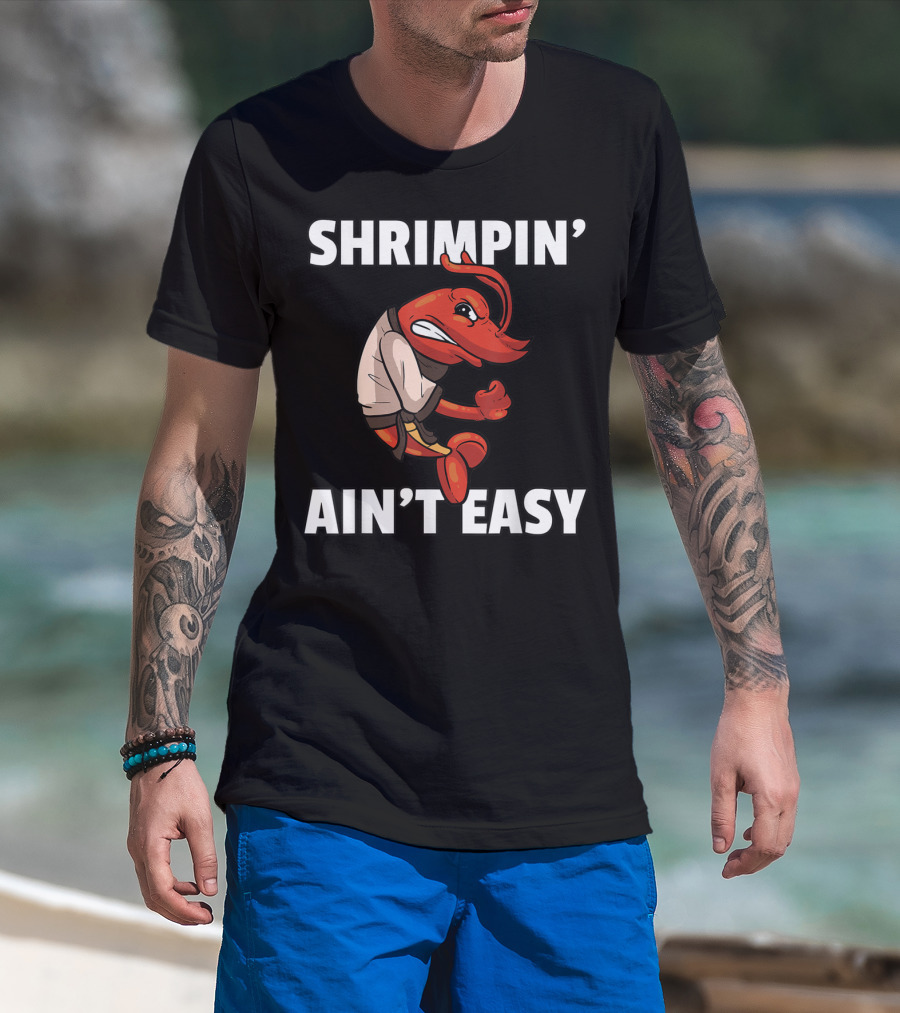 Shrimpin' Ain't Easy Shrimp Jiu Jitsu BJJ Martial Arts Humor T-Shirt