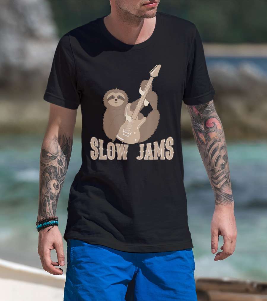 Slow Jams Sloth Fun Bass Guitar Chilled T-Shirt
