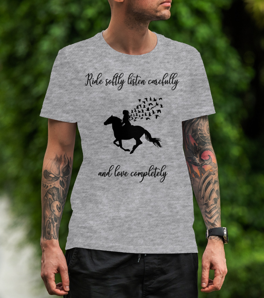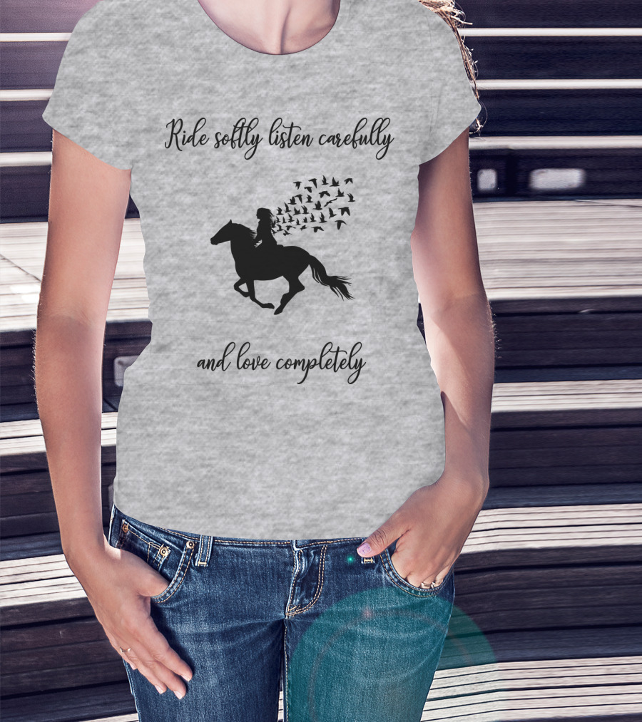Ride Softly Listen Carefully And Love Completely Horse Rider Birds T-Shirt