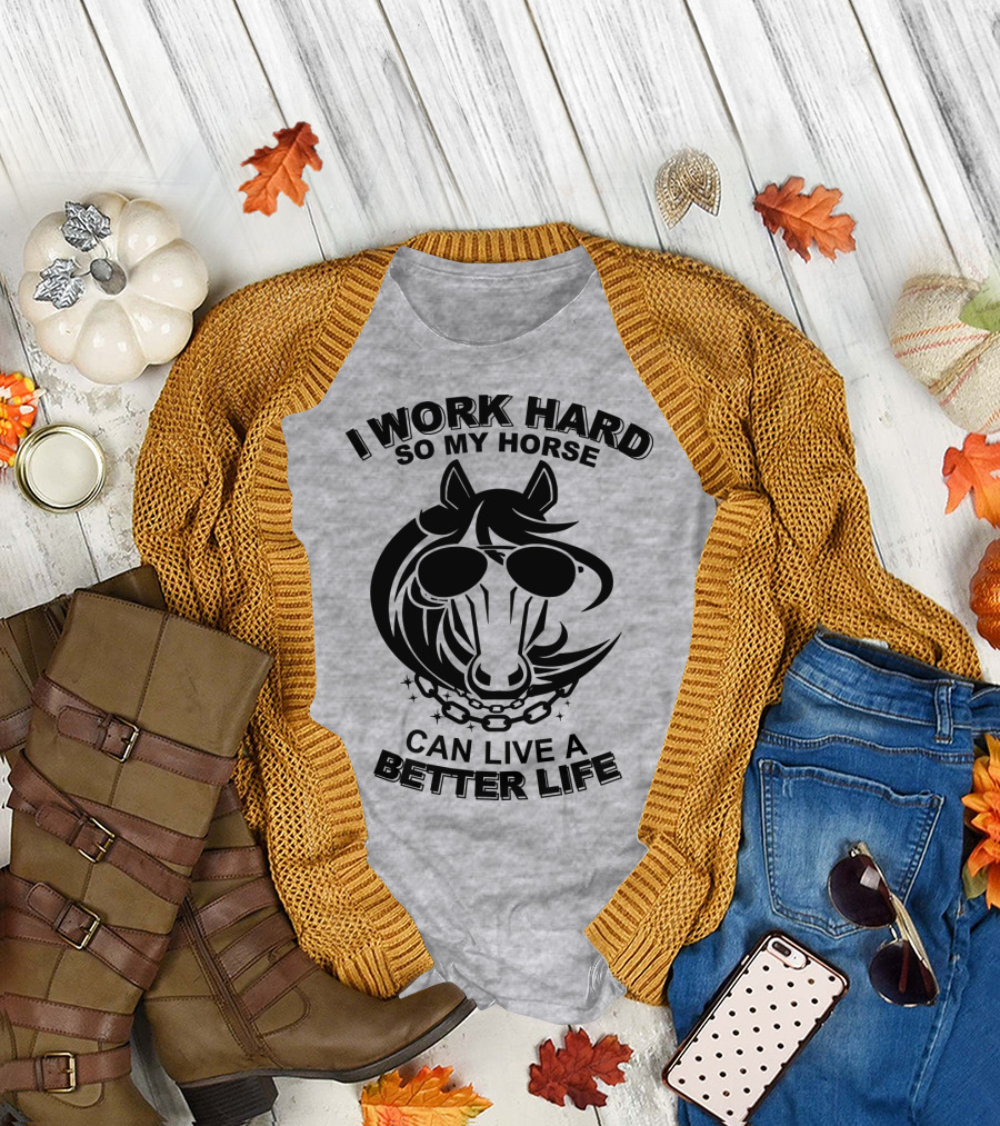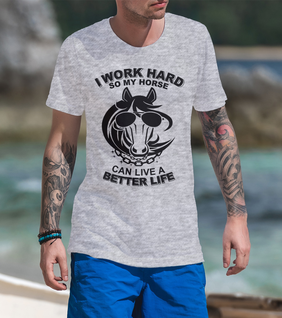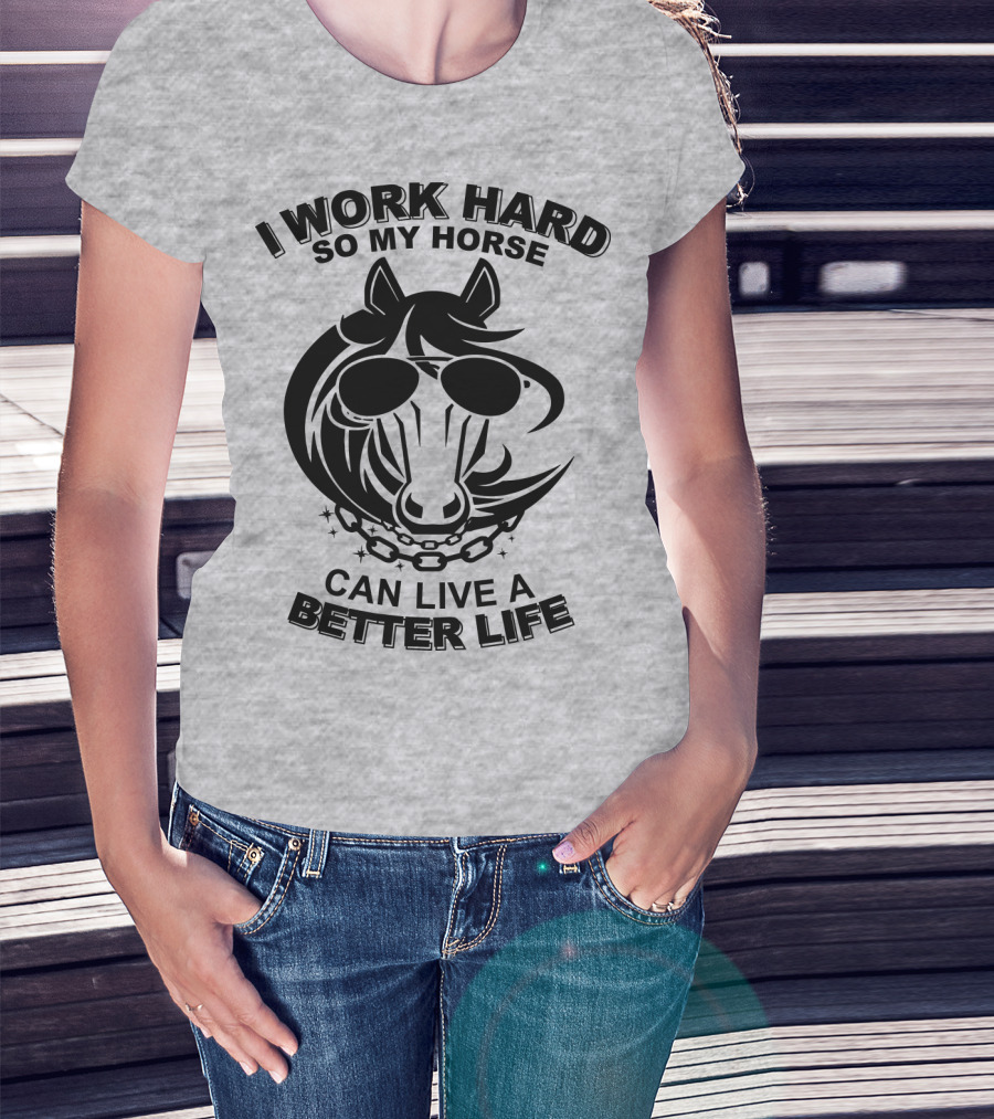 I Work Hard So My Horse Can Live A Better Life Horse With Sunglasses T-Shirt