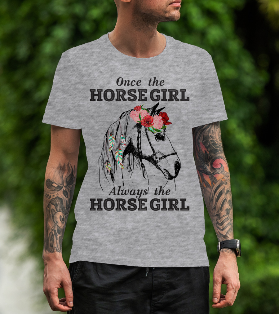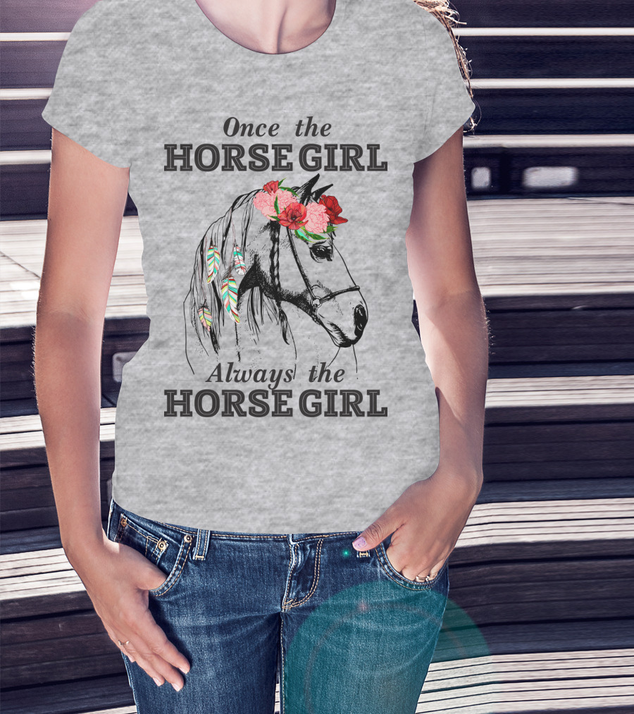 The Once the HORSE GIRL Always the HORSE GIRL Floral Feather Adorned Horse T-shirt is designed for everyday wear and a consistent fit. Fabric is pre-shrunk ring-spun cotton with durable stitching. See the size chart below for exact measurements.