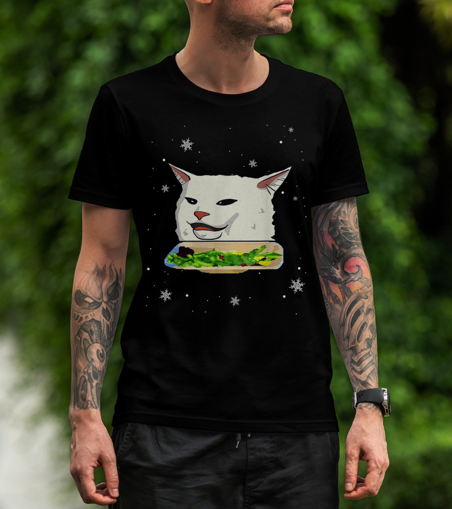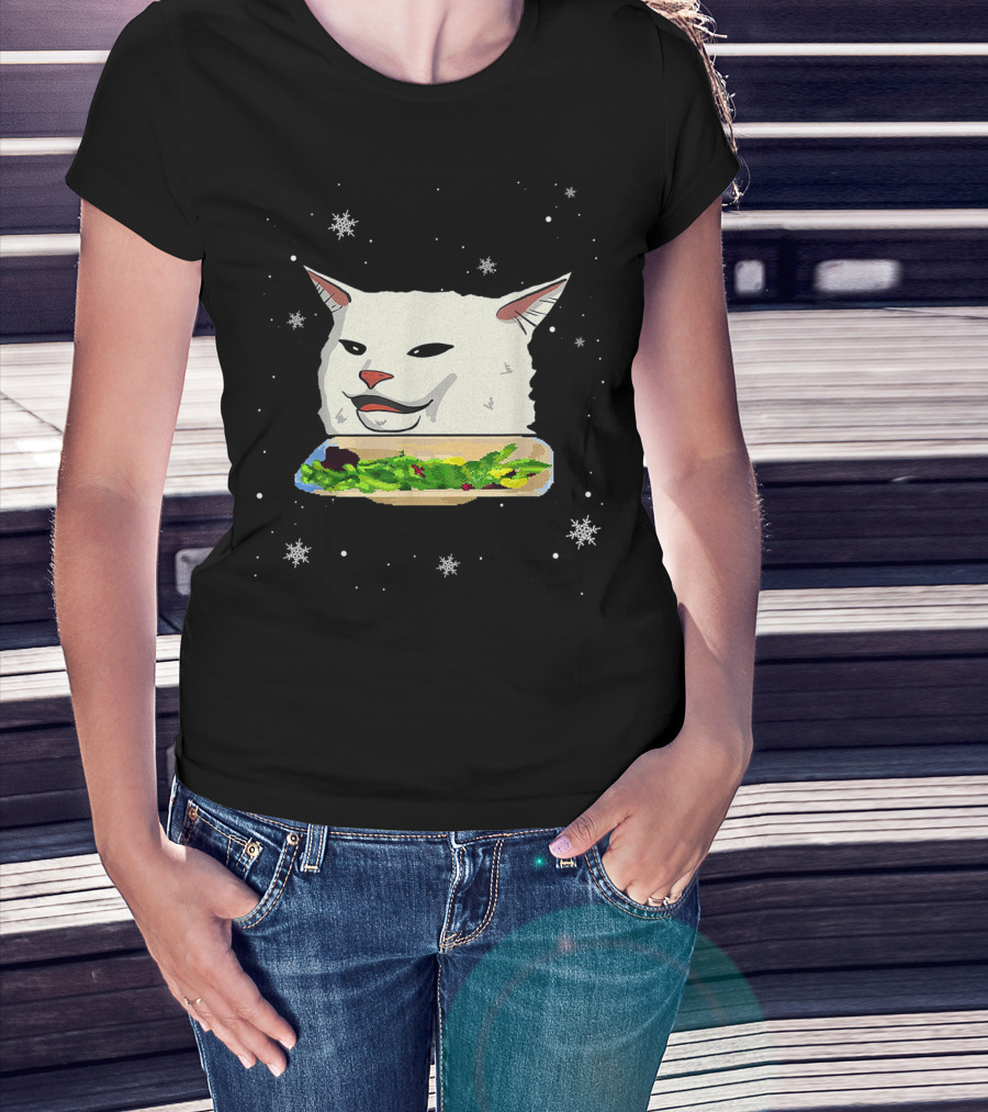 Table Cat Smudge The Cat Meme Snowflakes Salad T-Shirt