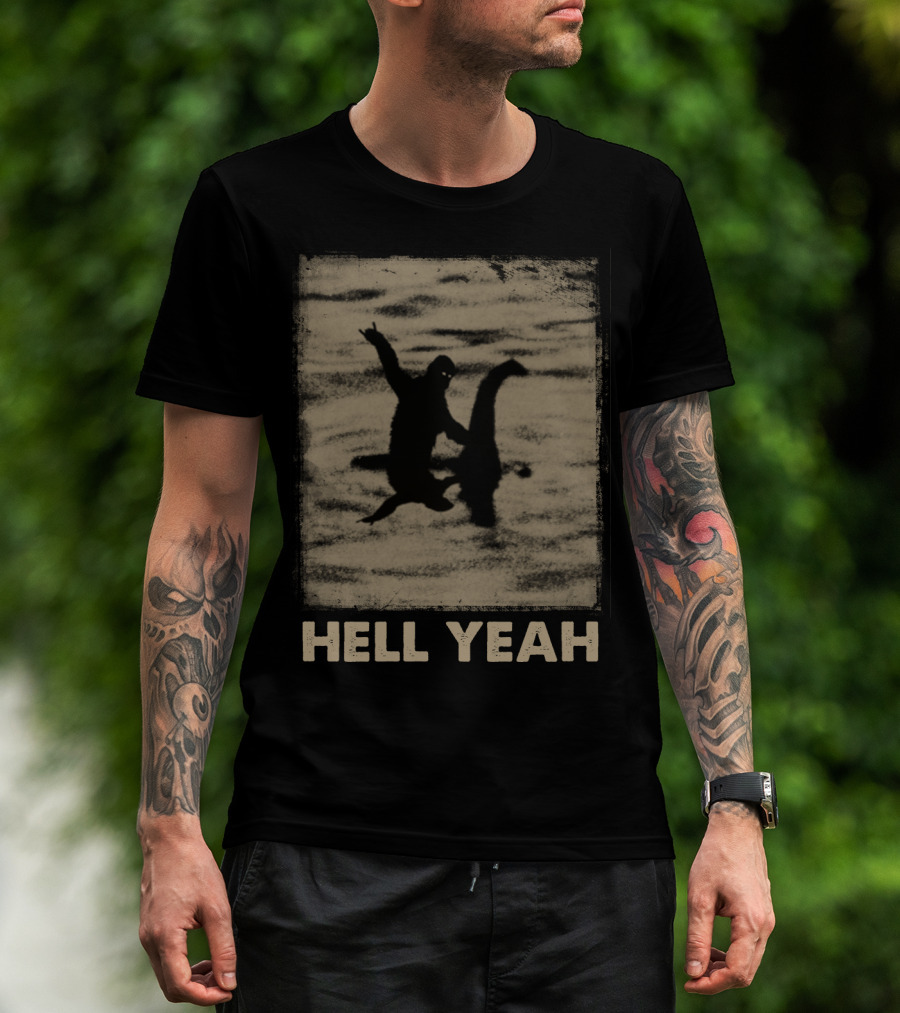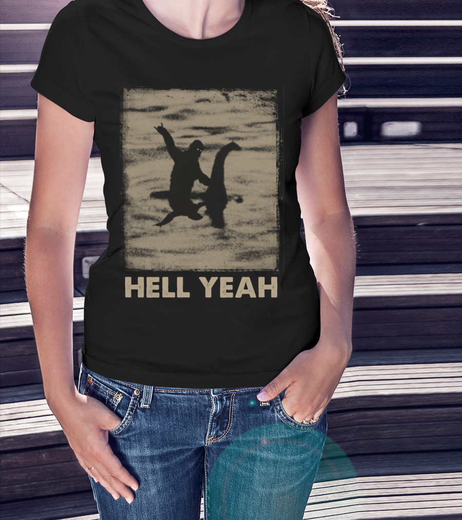 Bigfoot Riding Nessie Hell Yeah T-Shirt