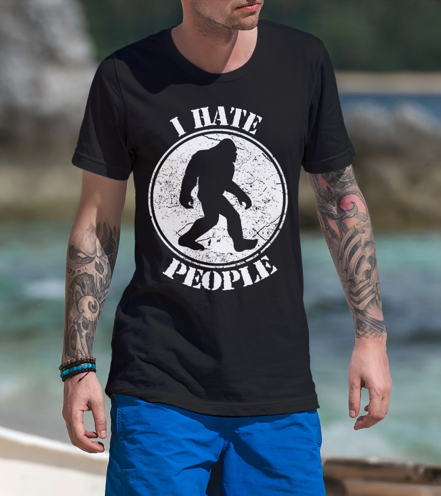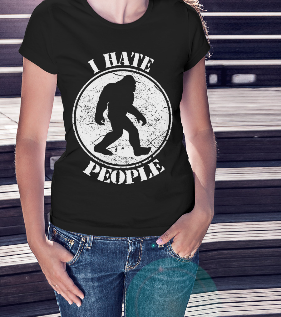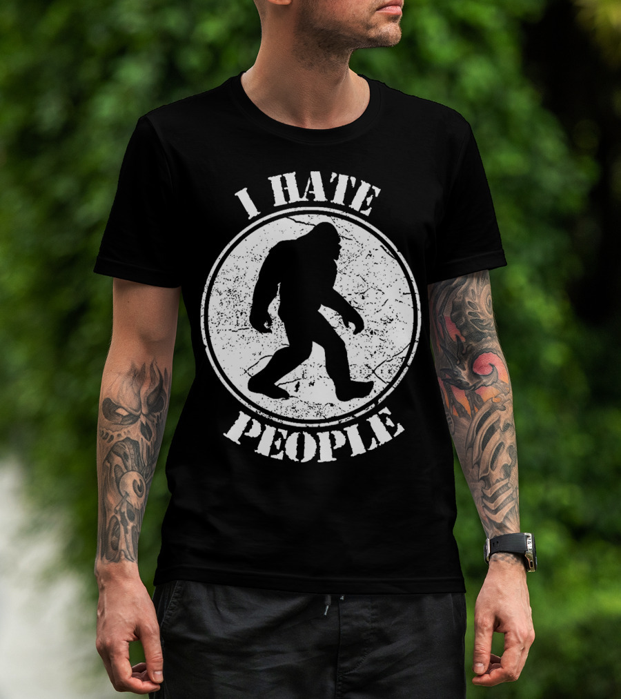I Hate People Bigfoot Silhouette Walking In Circle T-Shirt