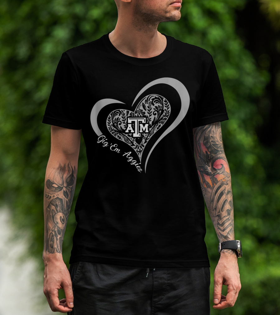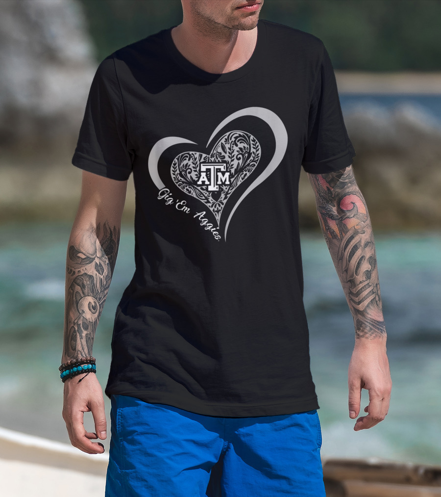 Gig 'Em Aggies Texas A&M Patterned Heart Graduation T-Shirt