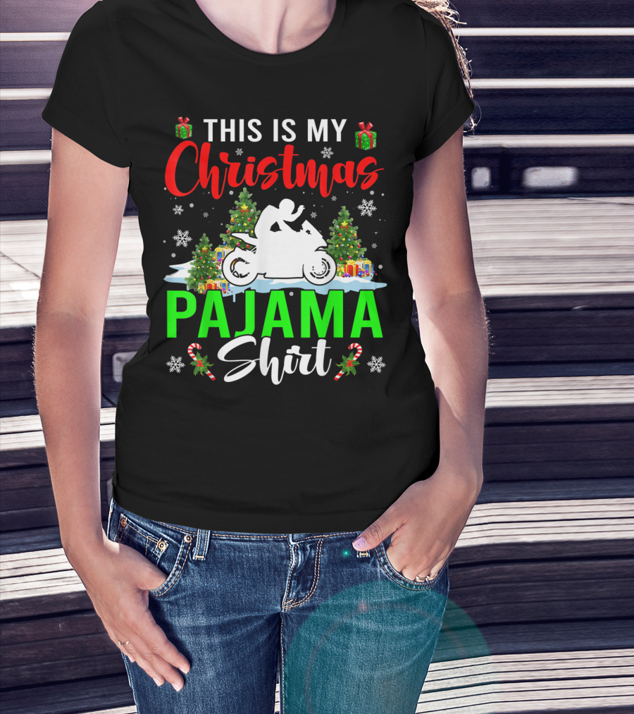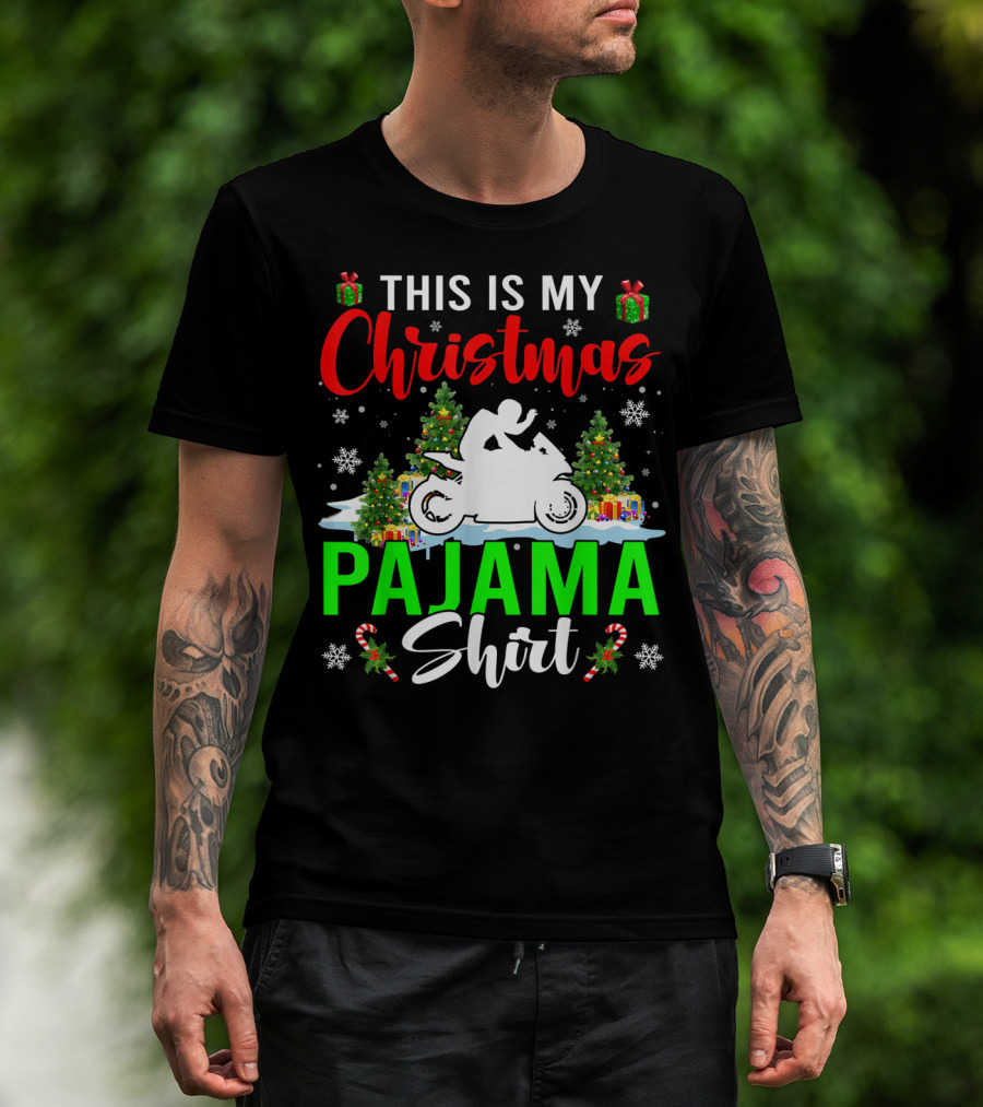 This Is My Christmas Pajama Shirt Snowflakes Motorbike Trees Presents T-Shirt