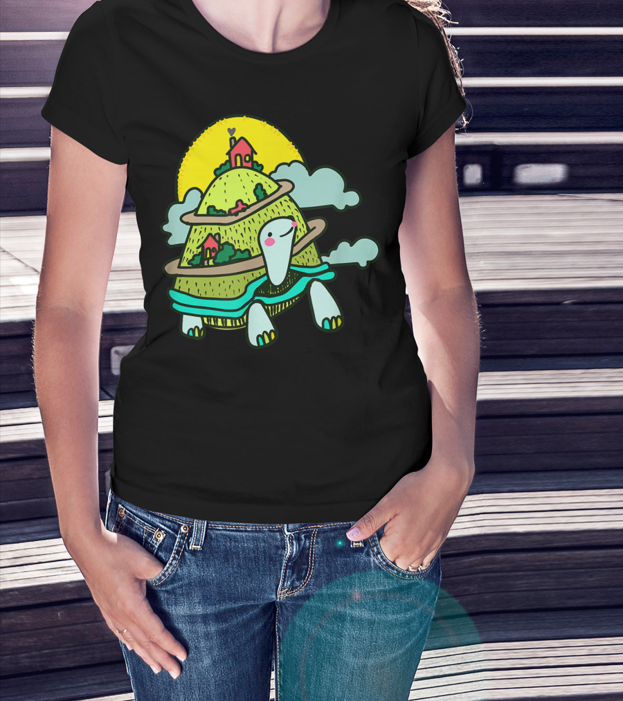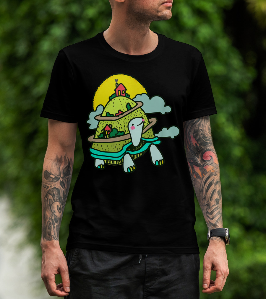 Turtle Life On A Mountain Path With Houses And Sun T-Shirt